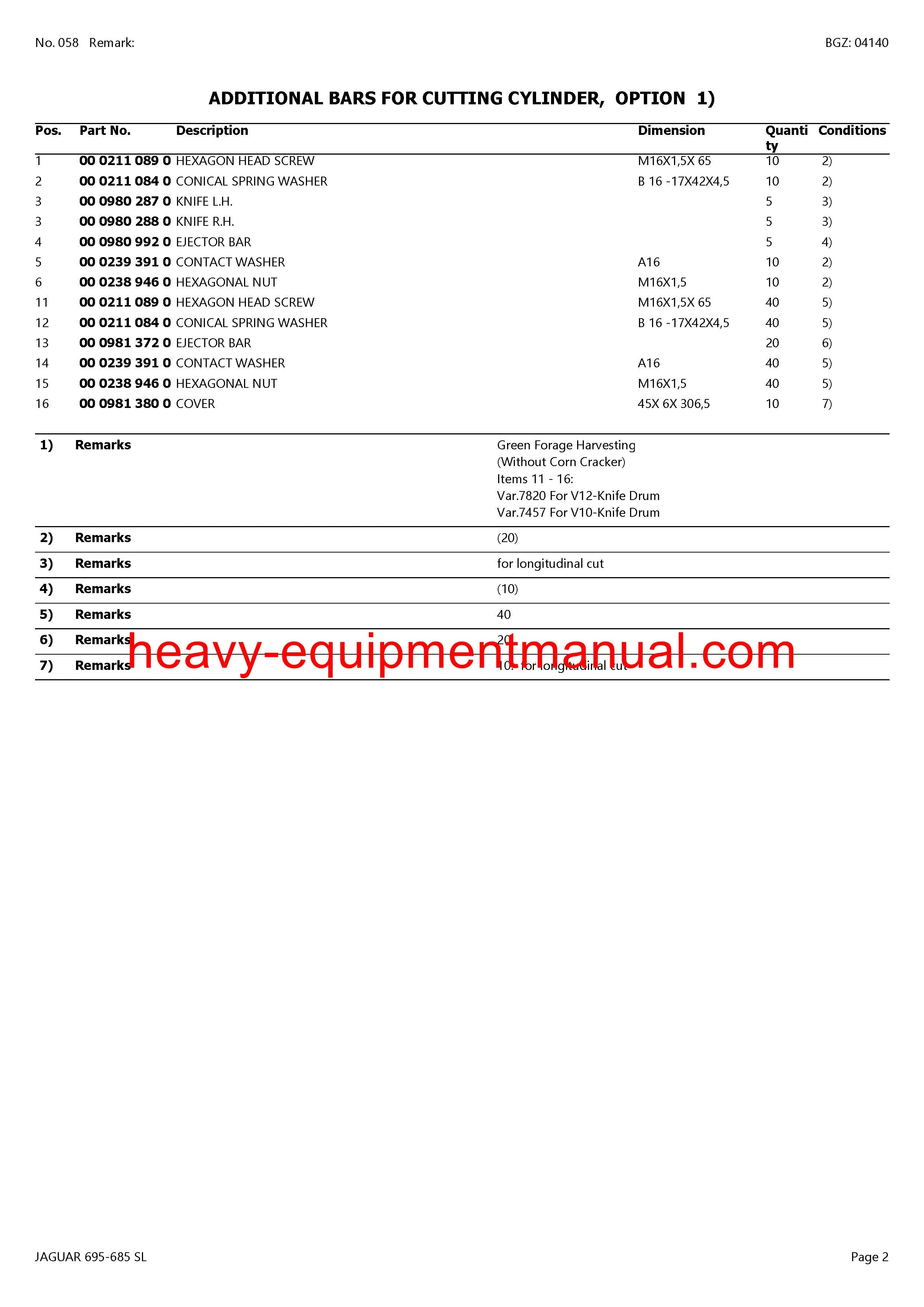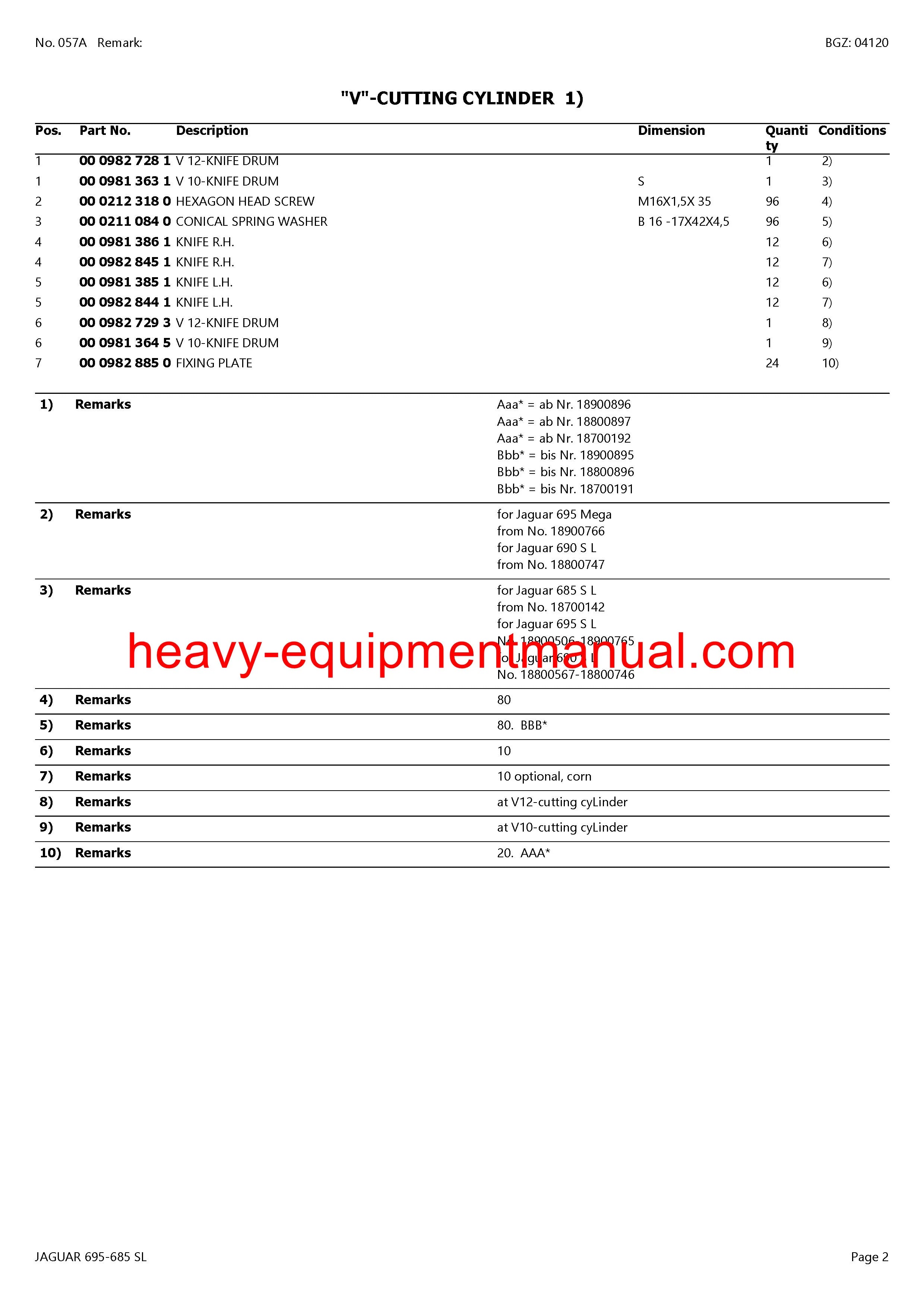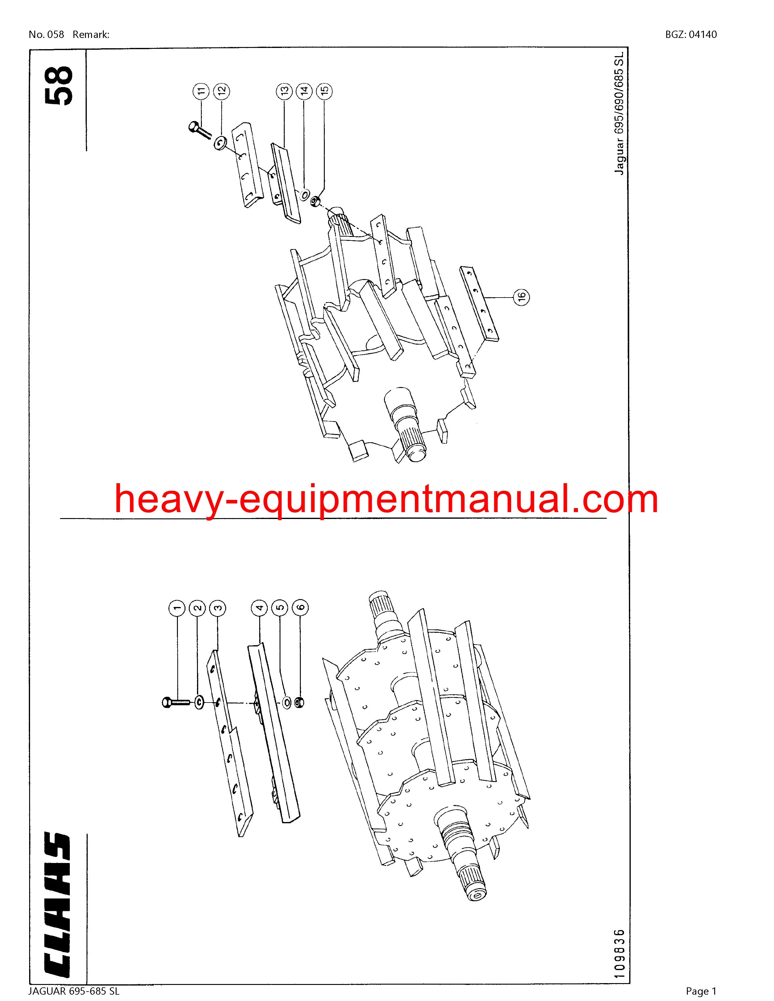 PDF Claas 695 - 685 SL Jaguar Forage Harvester Parts Manual