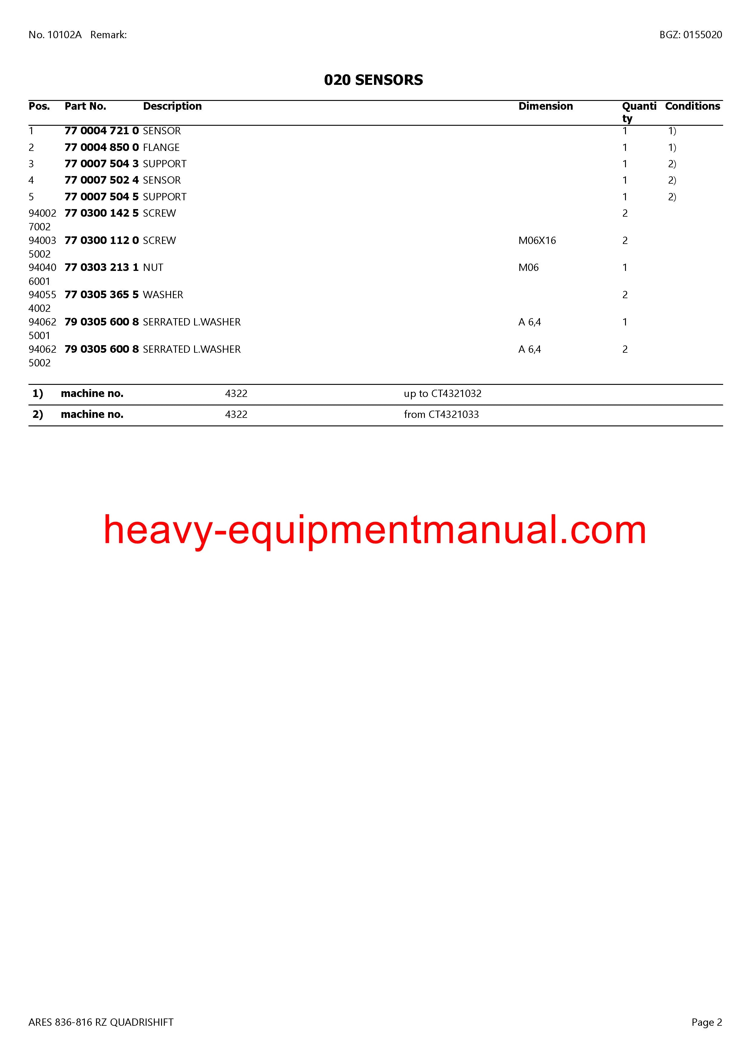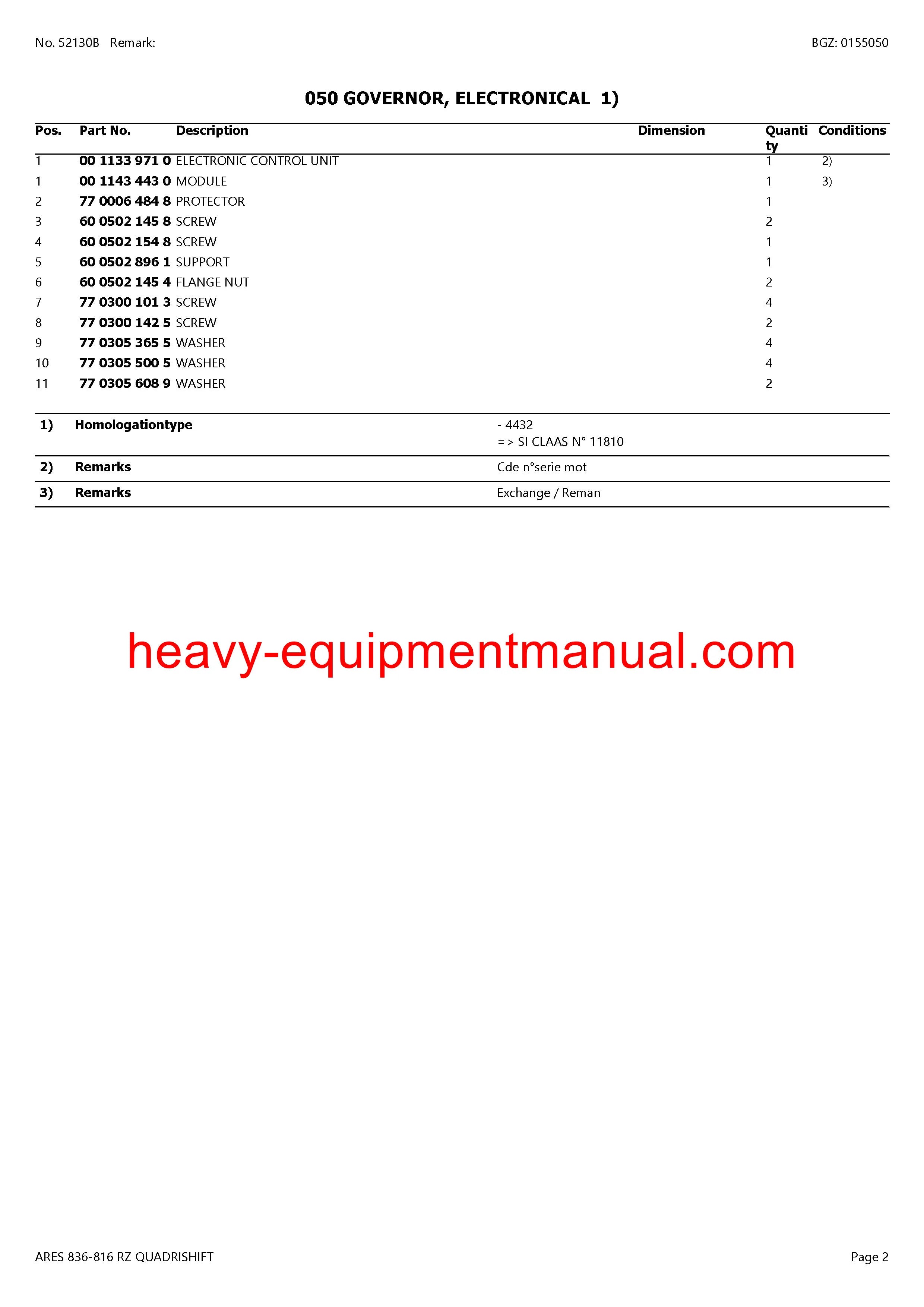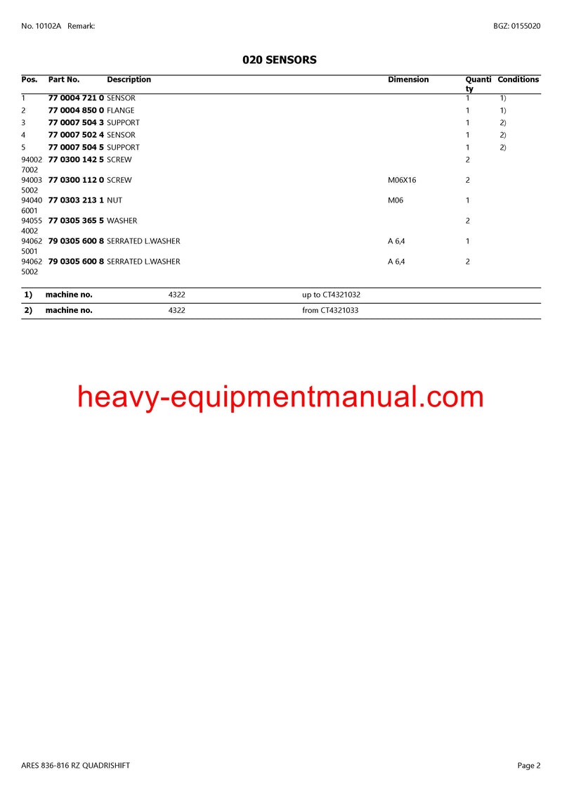 PDF Claas 836 - 816 RZ Ares Quardristhift Tractor Parts Manual