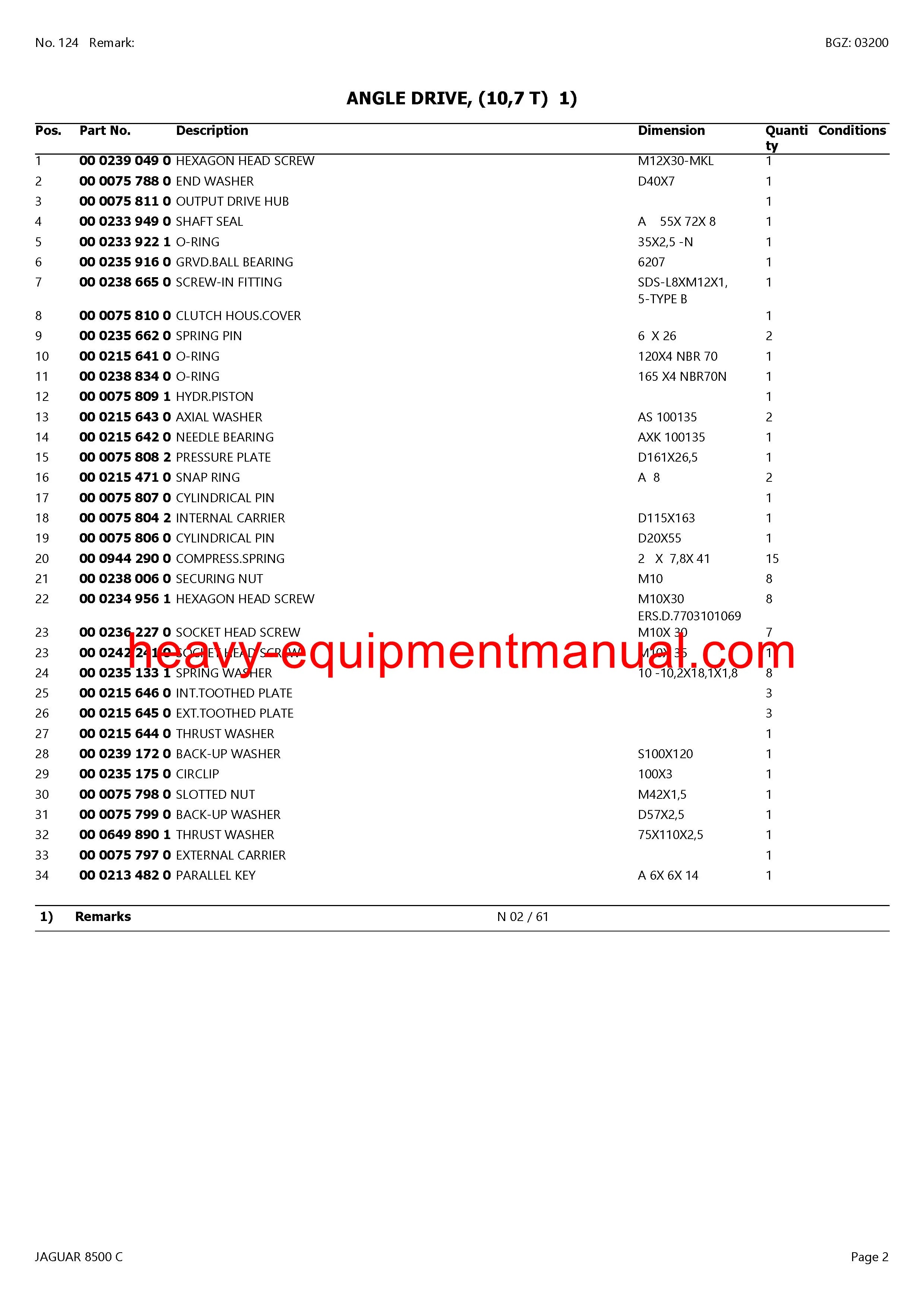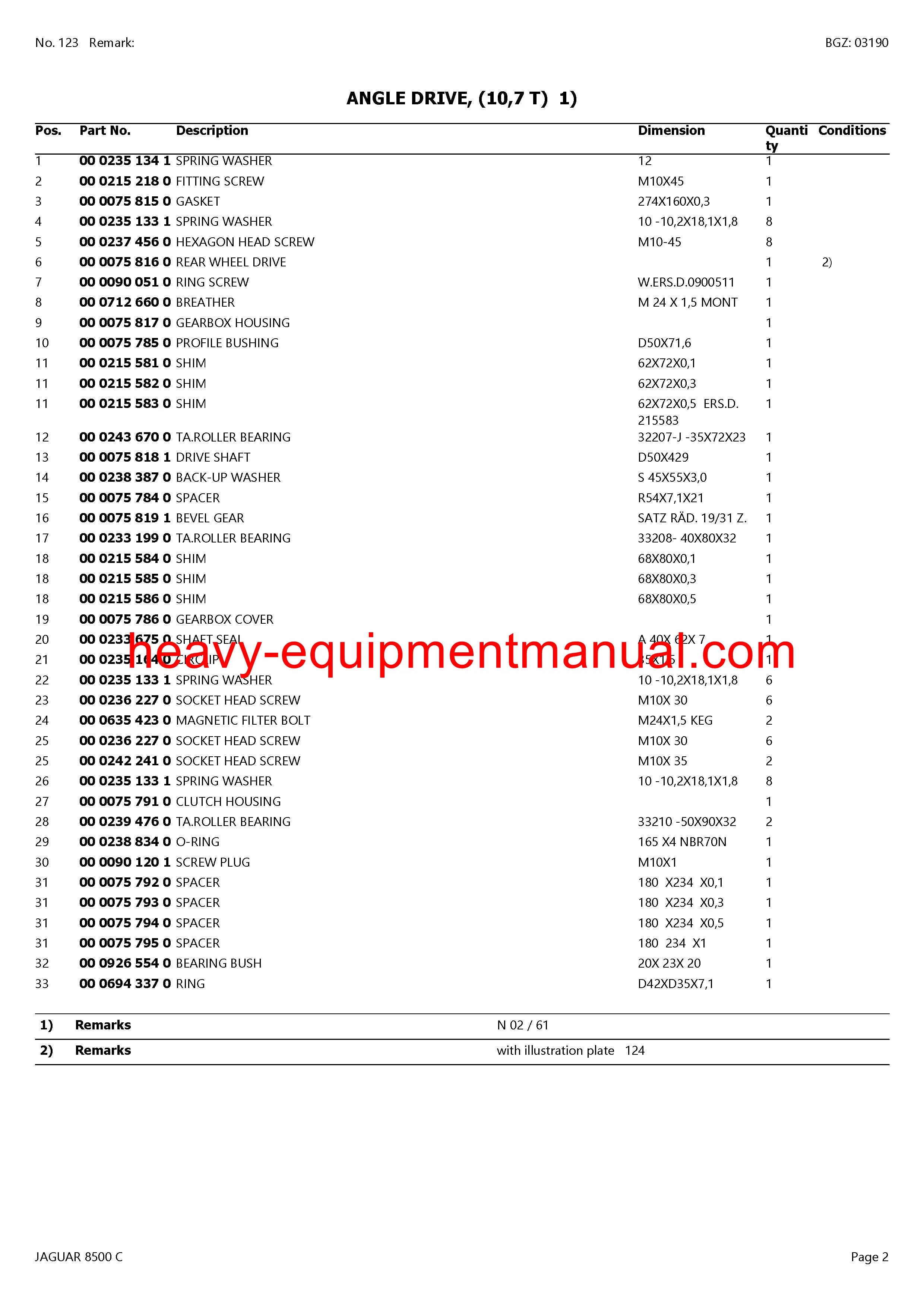 PDF Claas 8500C Jaguar Forage Harvester Parts Manual