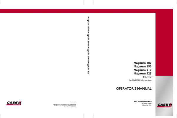 It is an Complete Factory original factory Operator's Manual For Case IH Tractor Magnum 180 190 210 225 Operator’s. We Offers Manual HIGH quality images, diagrams, instructions to help you to operate. This document is printable, without restrictions, contains searchable text, bookmarks, crosslinks for easy navigation.