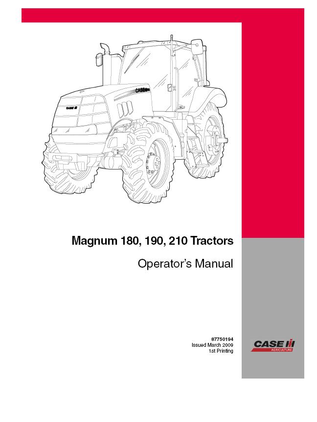It is an Complete Factory original factory Operator's Manual For Case IH Tractor Magnum 180 190 210 Operator’s. We Offers Manual HIGH quality images, diagrams, instructions to help you to operate. This document is printable, without restrictions, contains searchable text, bookmarks, crosslinks for easy navigation.