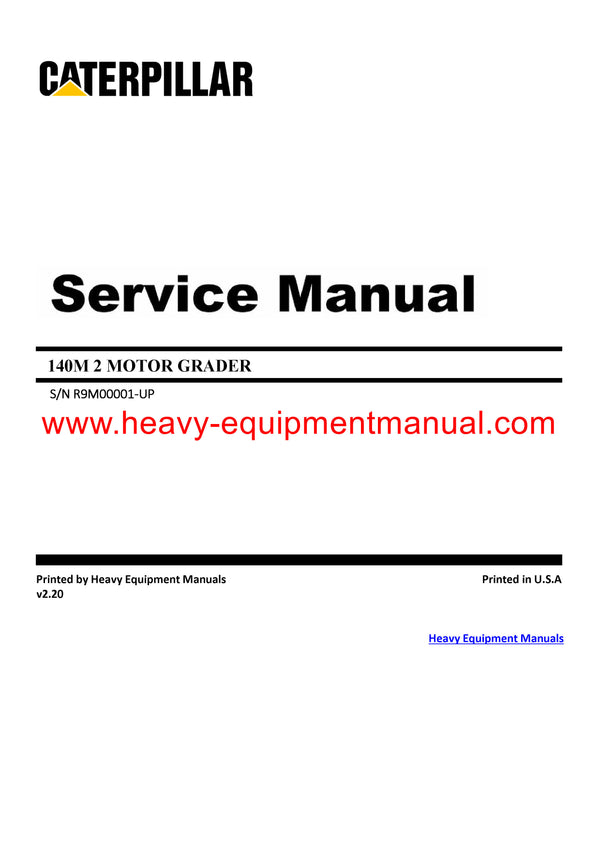 It is Complete Original Factory for Caterpillar 140M2 MOTOR GRADER. Covers all the service and repair information about Caterpillar 140M2 MOTOR GRADER. The information in this manual covers everything you need to know when you want to service and repair Caterpillar 140M2 MOTOR GRADER.