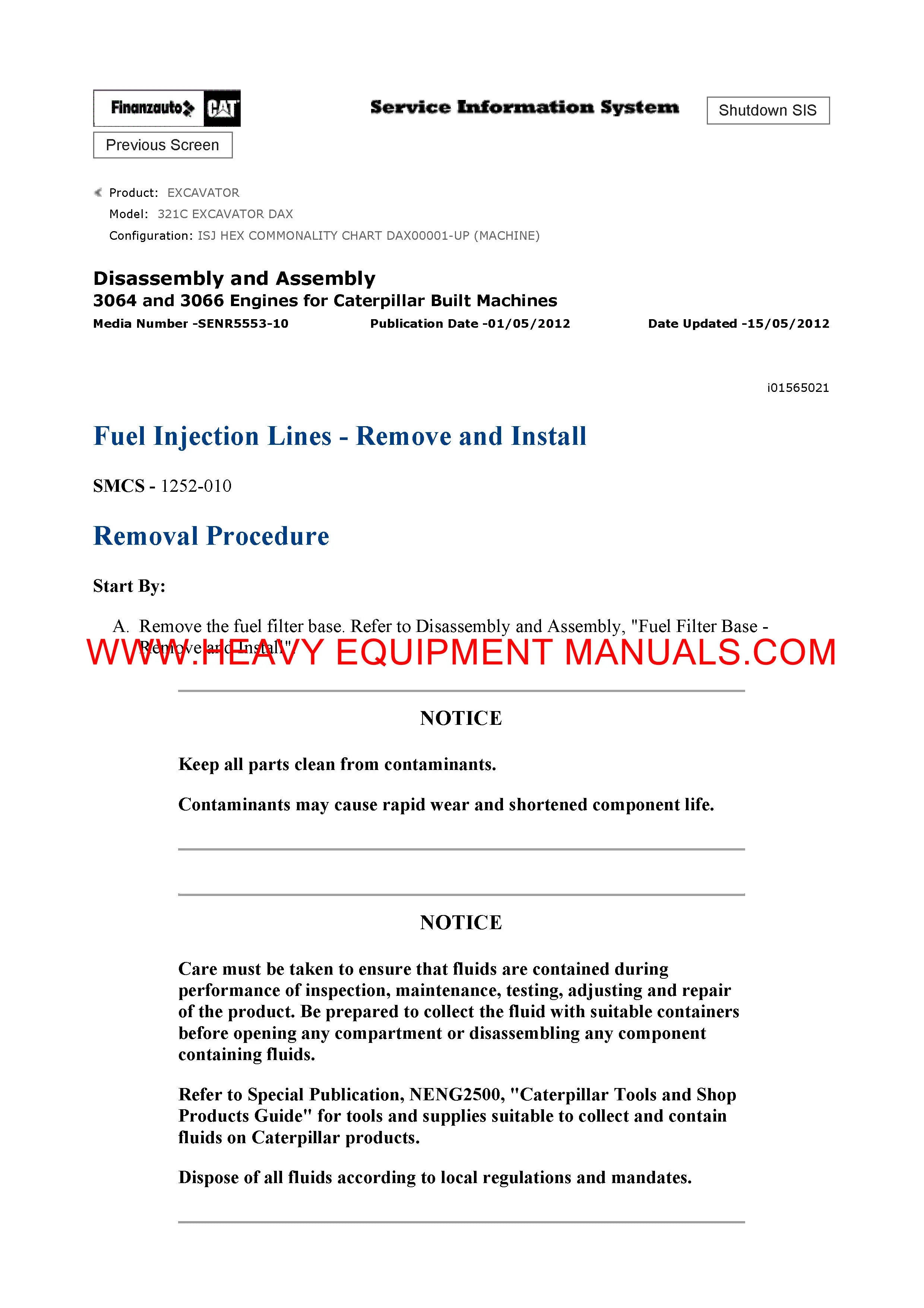 Caterpillar 321C EXCAVATOR General Service Information