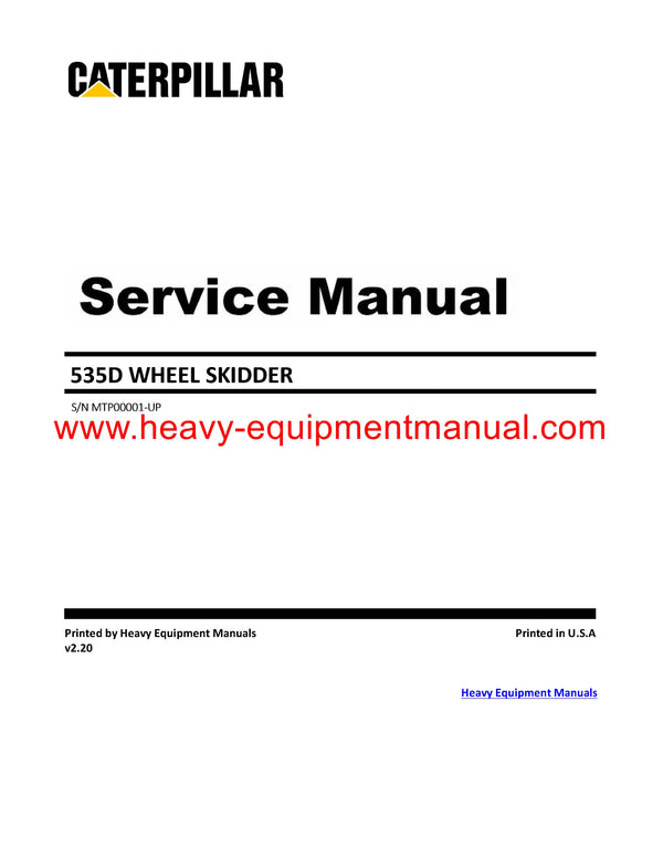 It is Complete Original Factory for Caterpillar 535D WHEEL SKIDDER. Covers all the service and repair information about Caterpillar 535D WHEEL SKIDDER. The information in this manual covers everything you need to know when you want to service and repair Caterpillar 535D WHEEL SKIDDER.