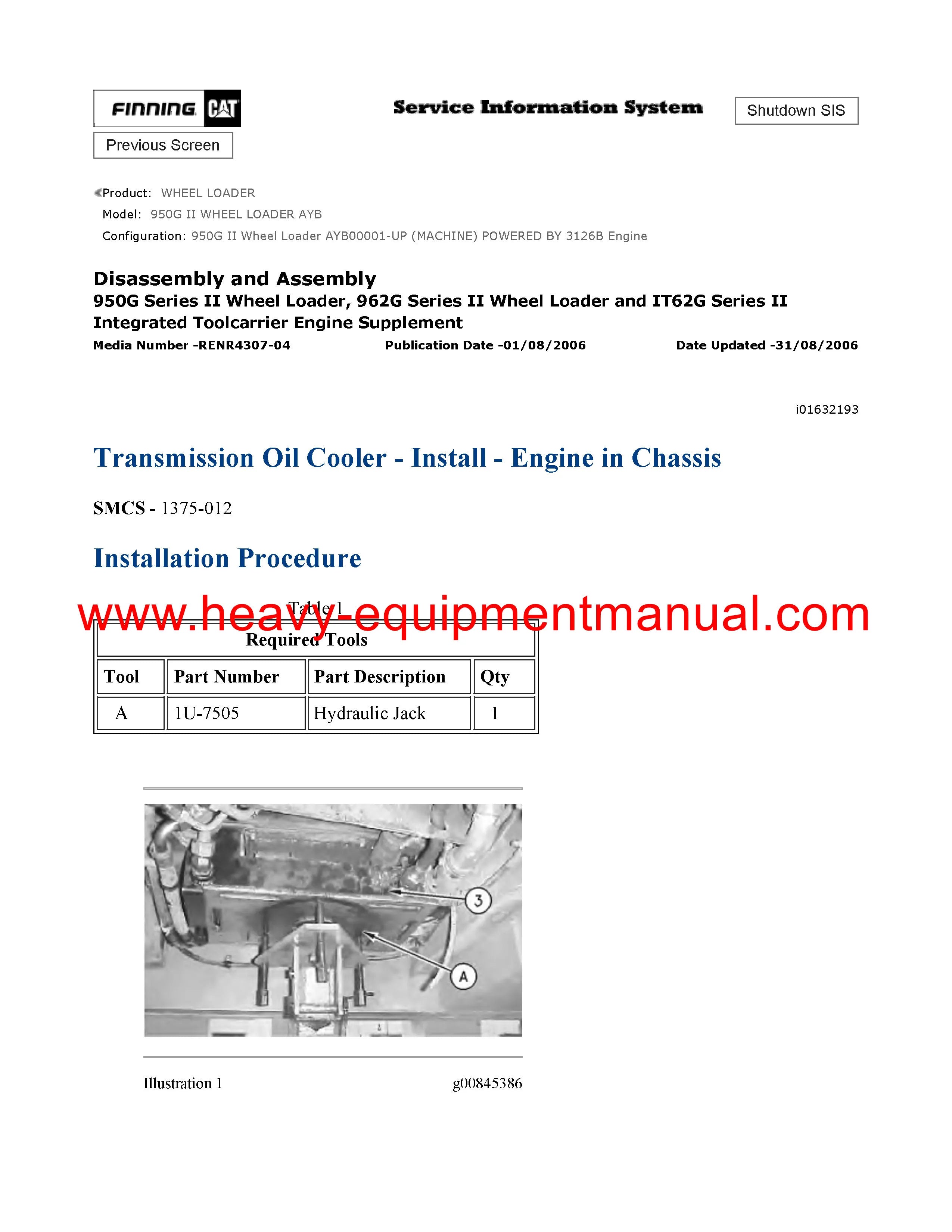 It is Complete Original Factory for Caterpillar 950G II WHEEL LOADER. Covers all the service and repair information about Caterpillar 950G II WHEEL LOADER. The information in this manual covers everything you need to know when you want to service and repair Caterpillar 950G II WHEEL LOADER.