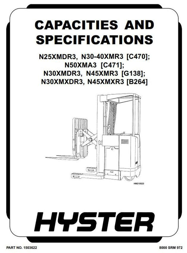 Download Hyster N30XMXDR3, N45XMXR3 Electric Reach Truck B264 Series Workshop Service Repair Manual