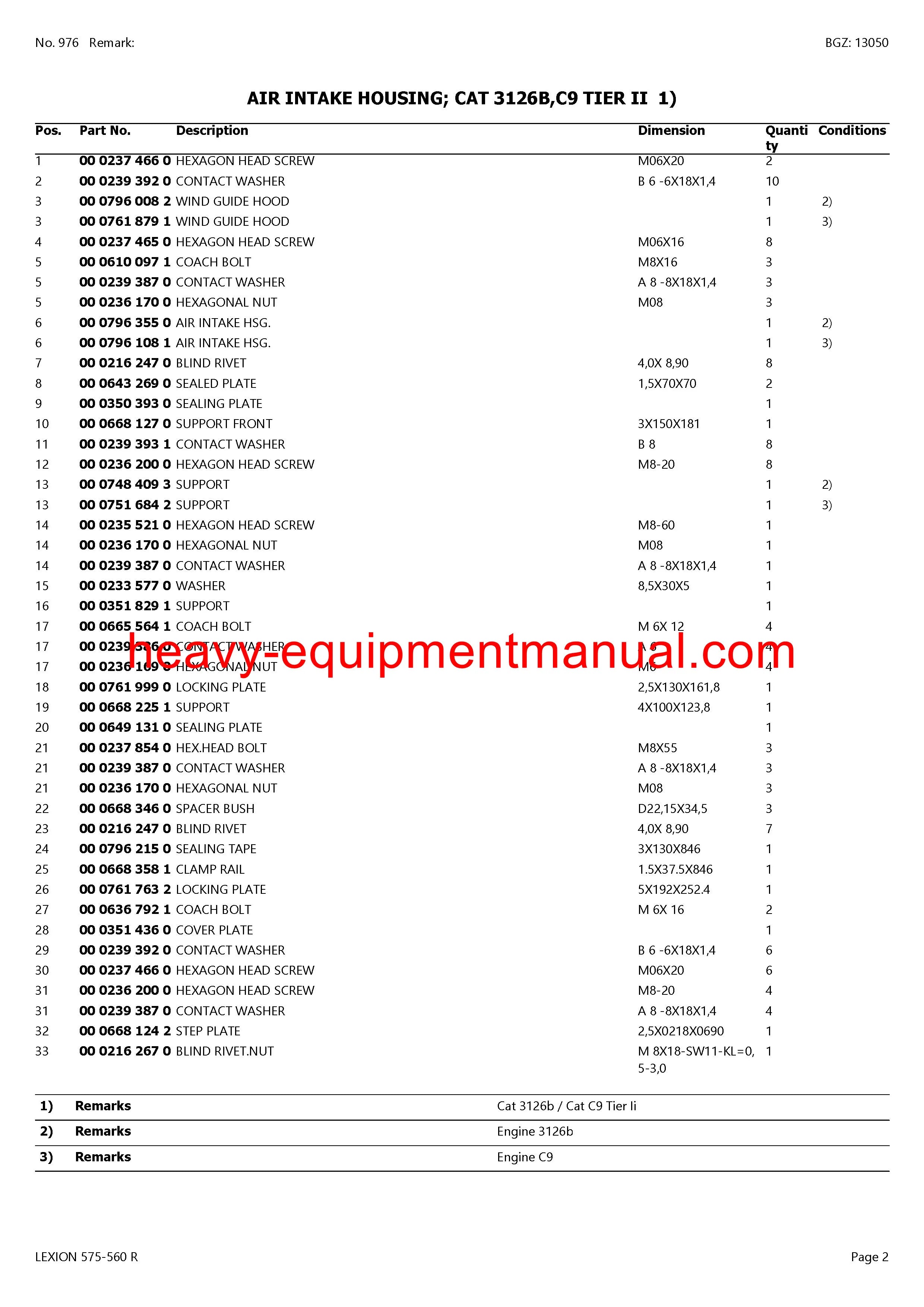 PDF Claas 575 - 560R Lexion Combine Parts Manual