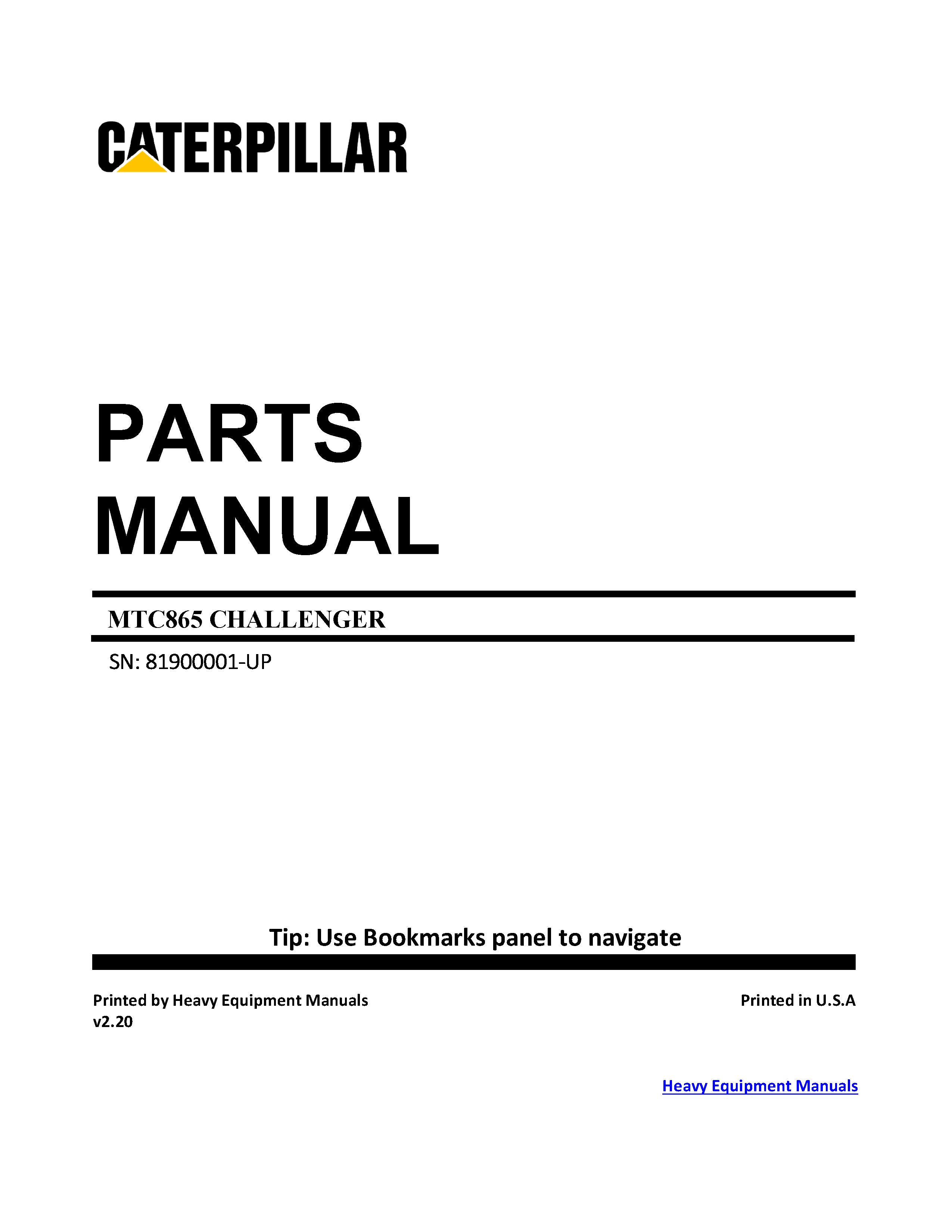CATERPILLAR MTC865 CHALLENGER PARTS CATALOG MANUAL 81900001-UP