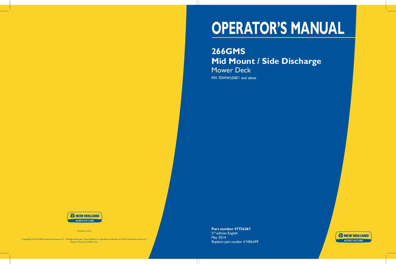 Download New Holland 266GMS Mid Mount / Side Discharge Mower Deck Operator Manual (PIN YDWWL0001 and above)