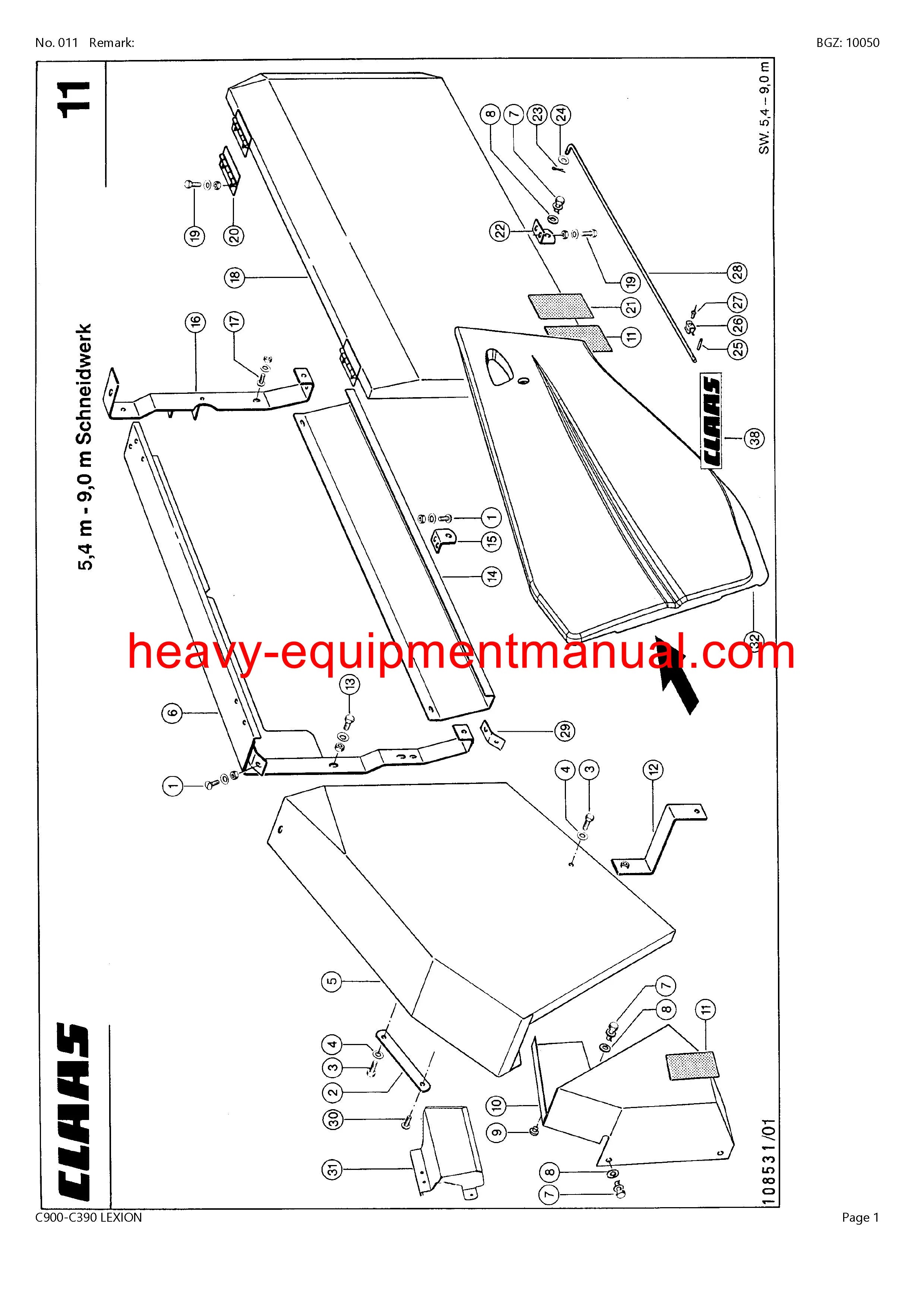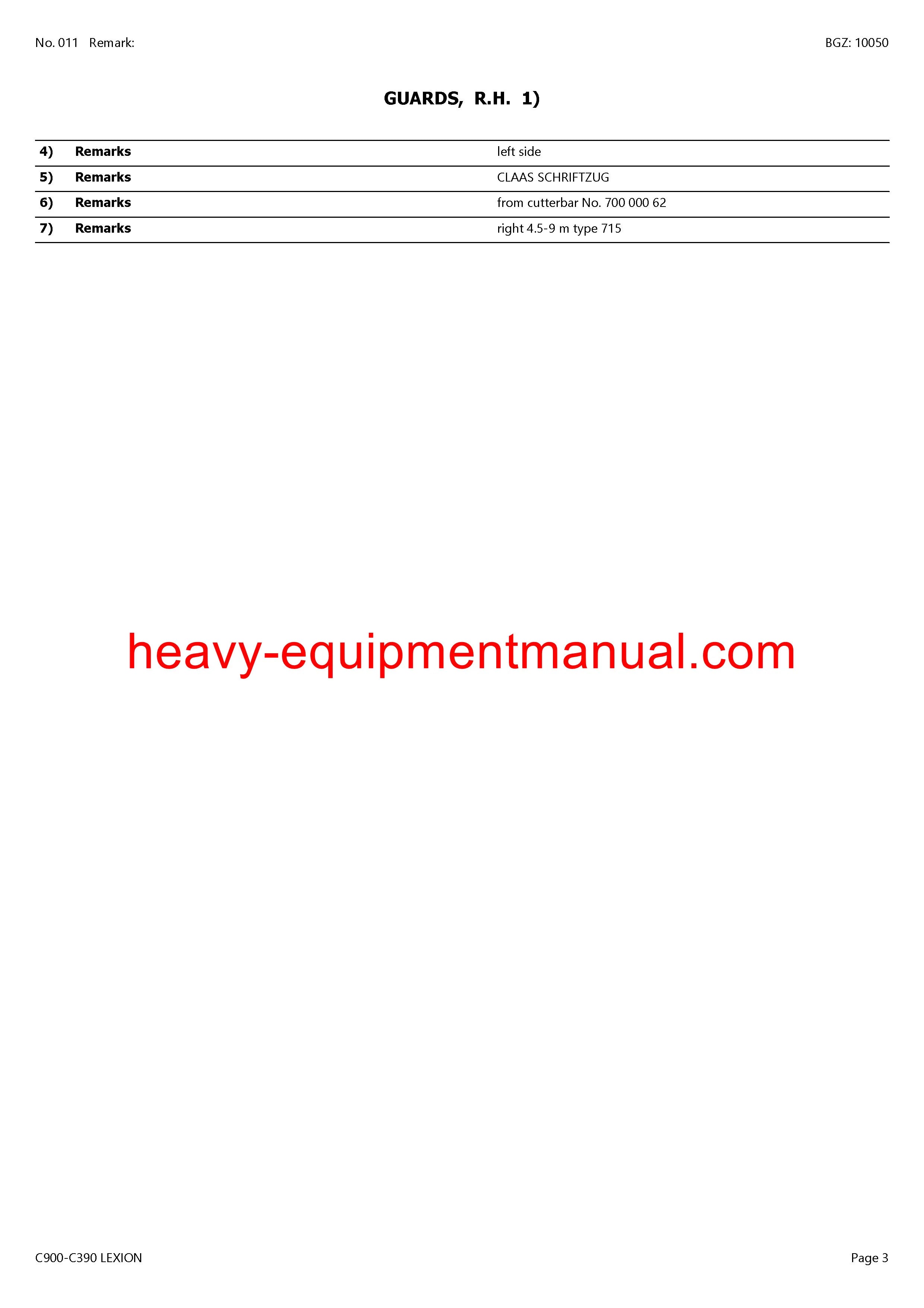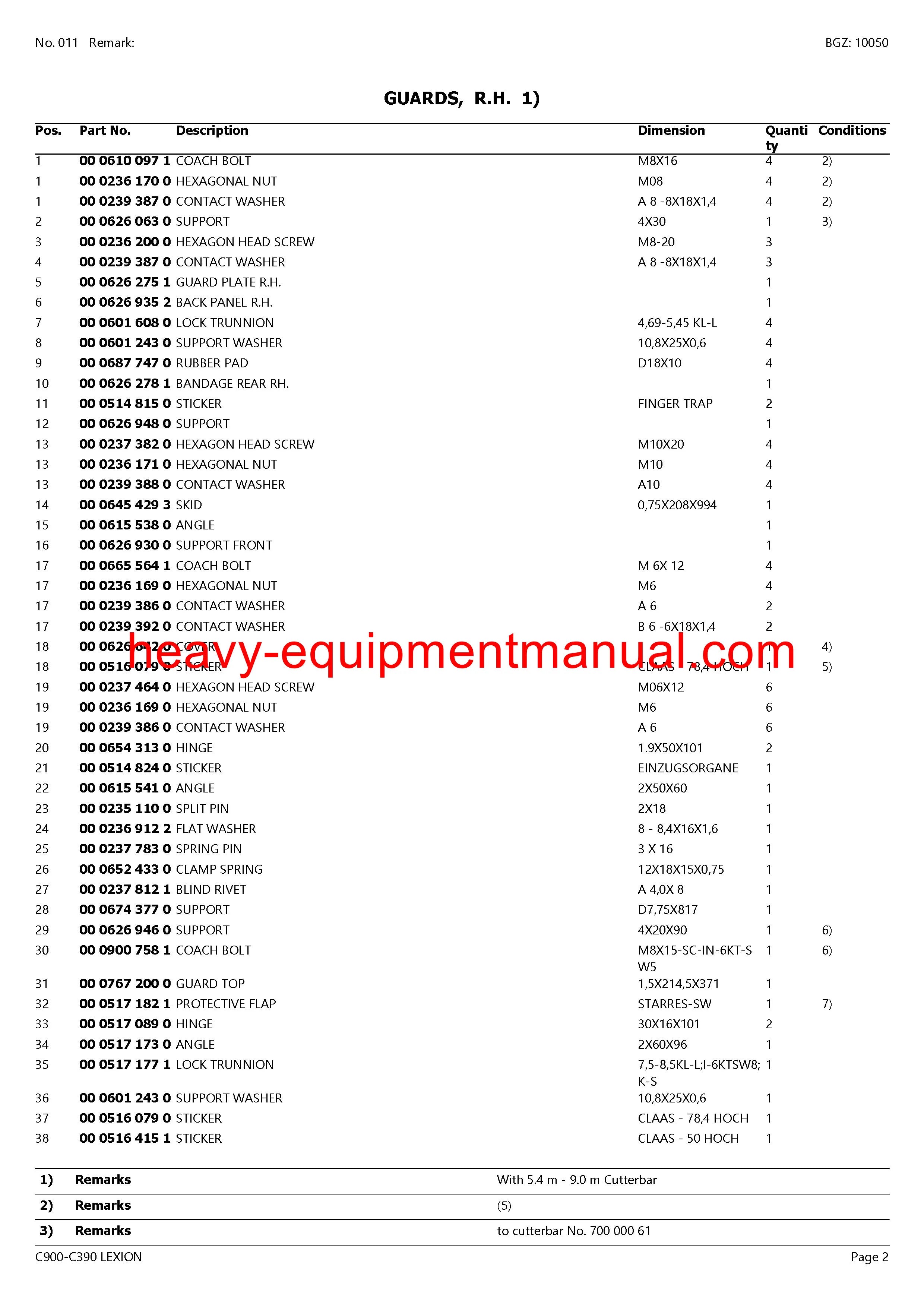Download Claas C900-C390 Lexion Cutterbar Parts Catalog Manual (SN 70800011-70899999)