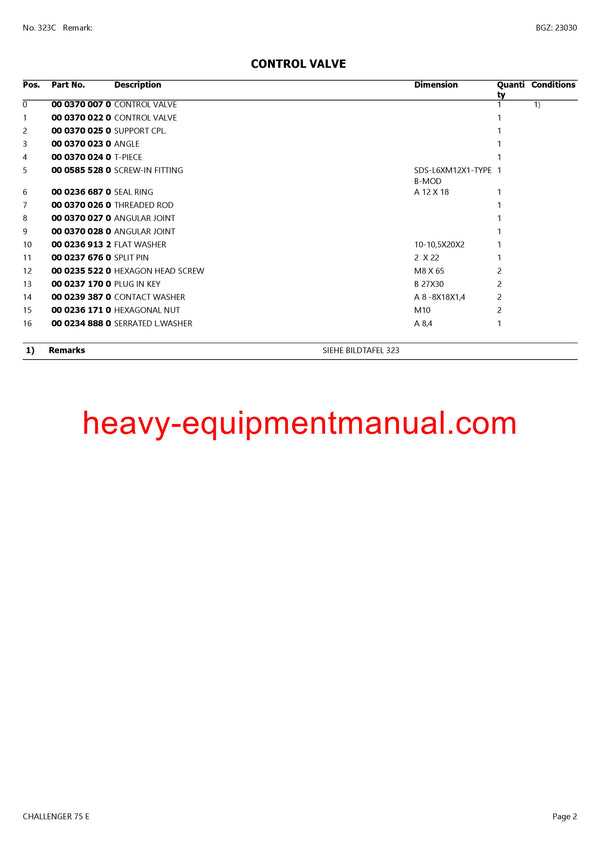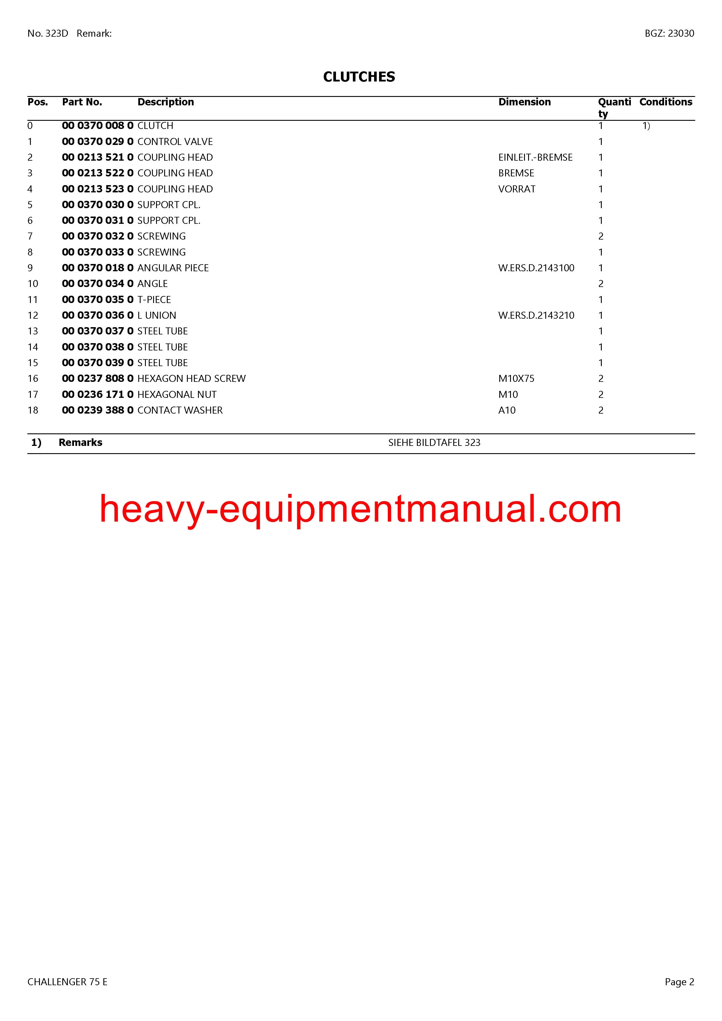 DOWNLOAD CLAAS CHALLENGER 75 E TRACTOR PARTS CATALOG MANUAL SN 79500001 - 79599999