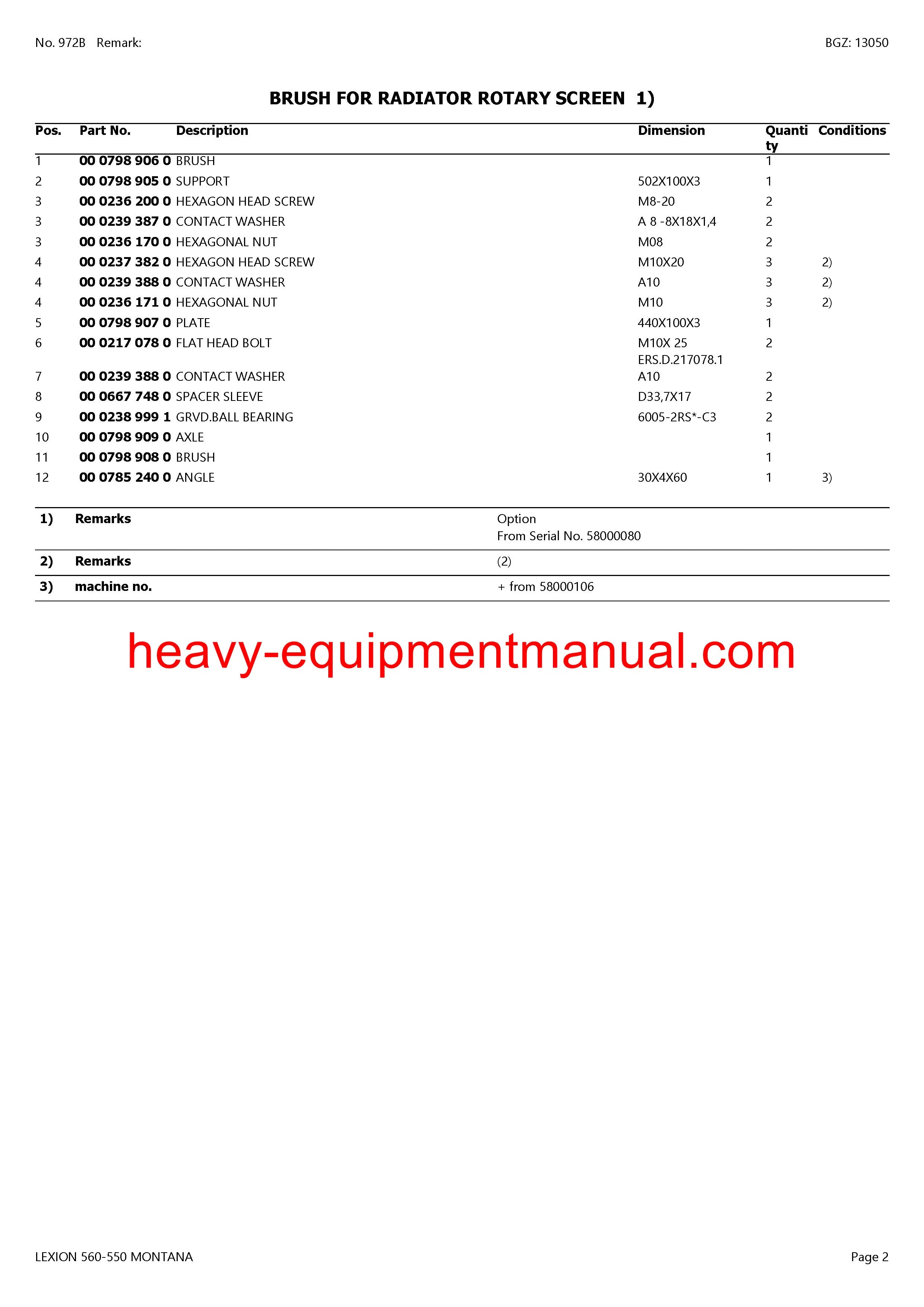 CLAAS LEXION 560-550 MONTANA COMBINE PARTS CATALOG MANUAL