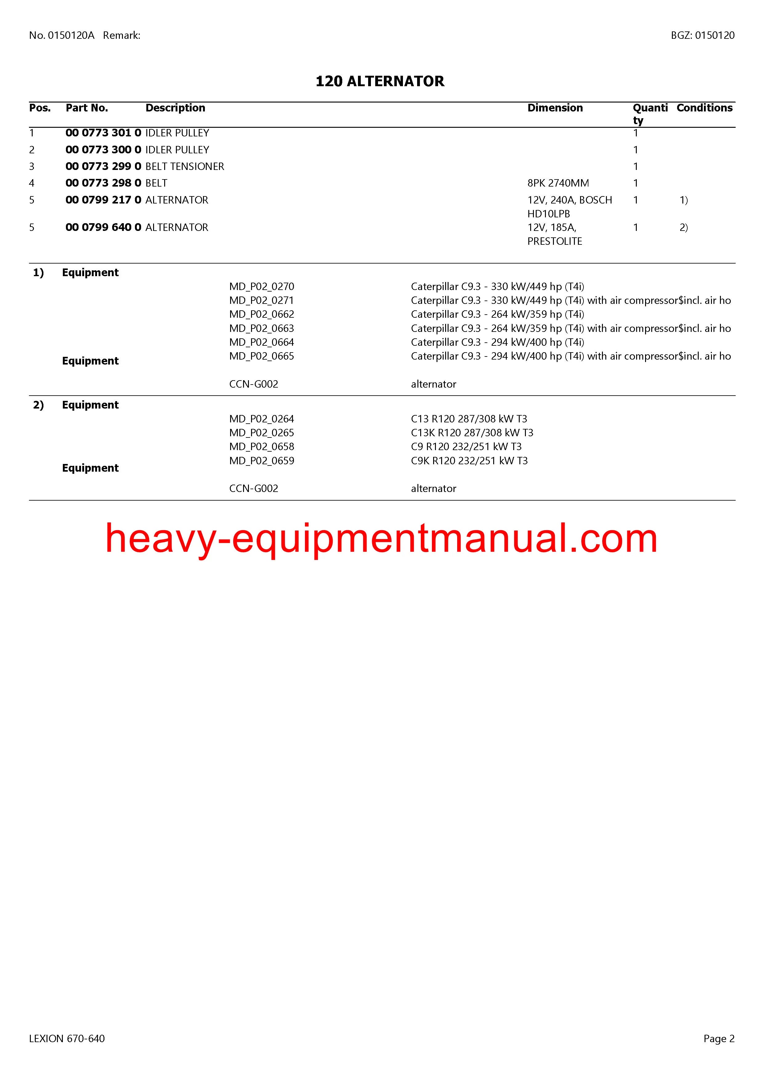 CLAAS LEXION 670-640 COMBINE PARTS CATALOG MANUAL (SN: C6400011-C6499999)
