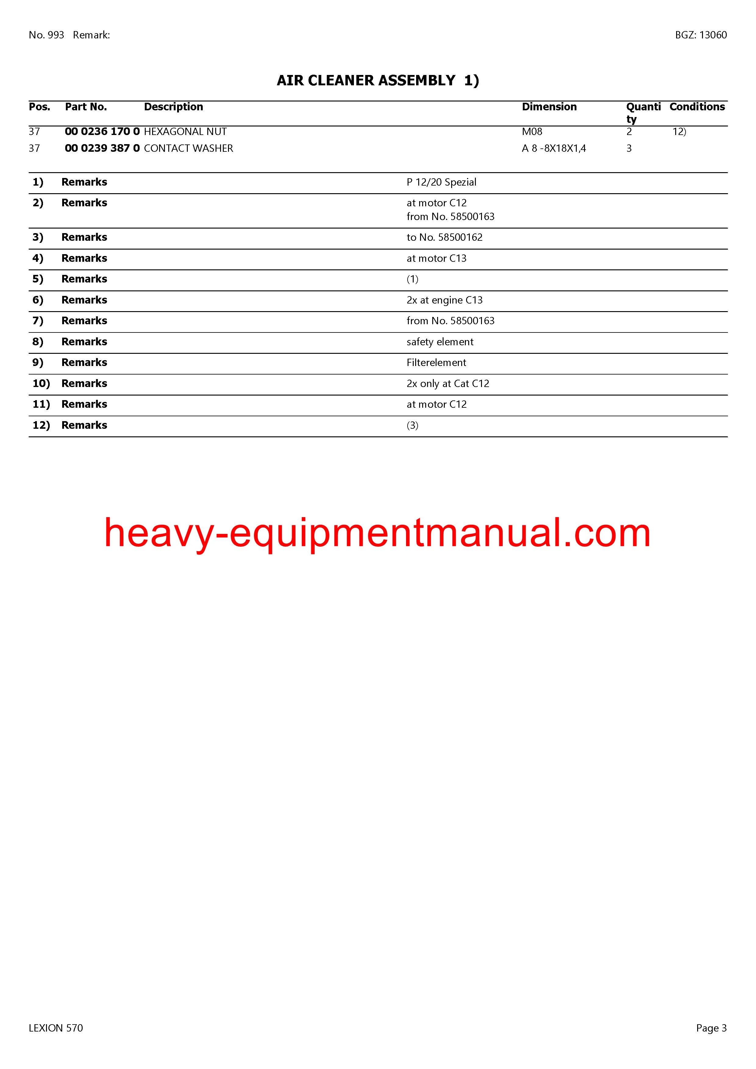 DOWNLOAD CLAAS LEXION (NORTH AMERICA) 570 COMBINE PARTS CATALOG MANUAL