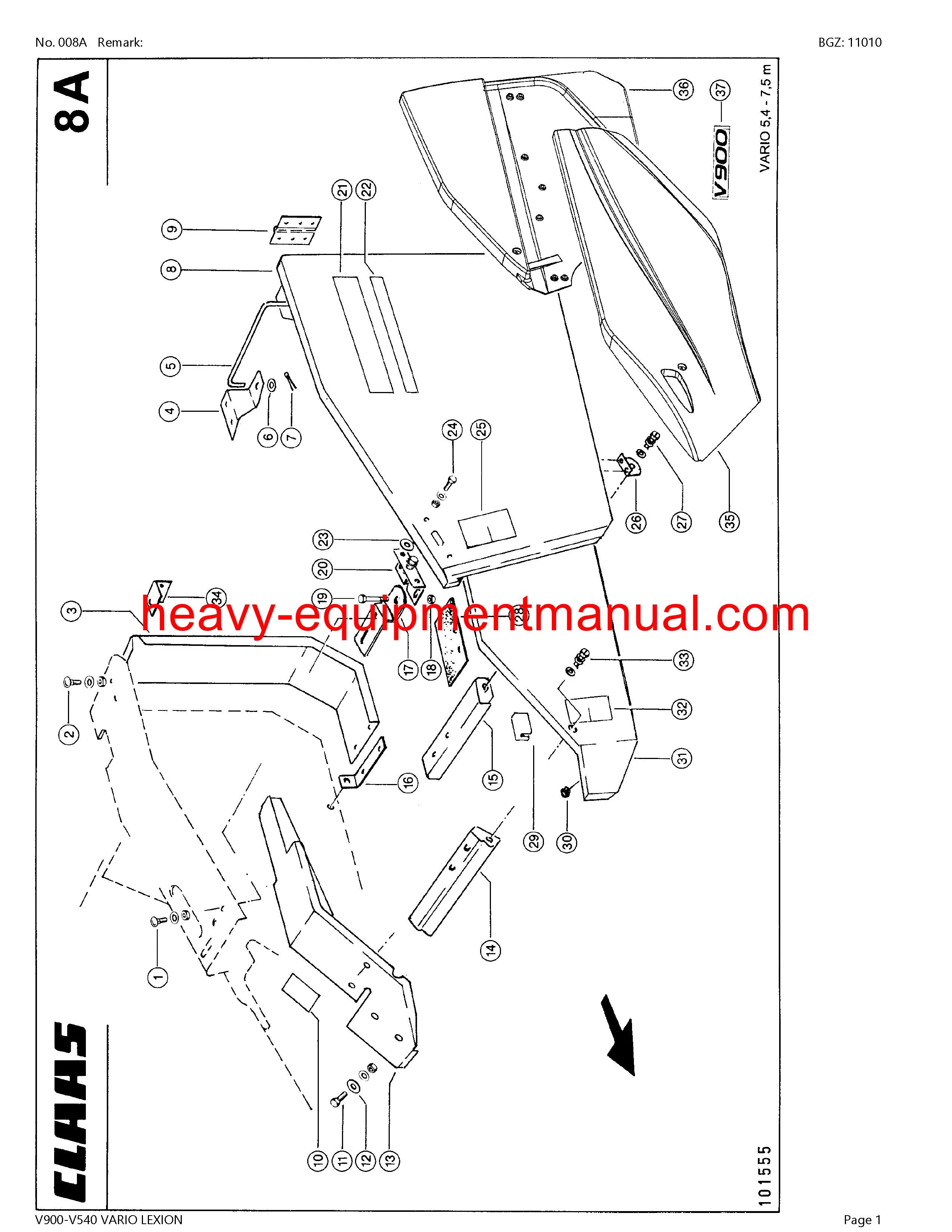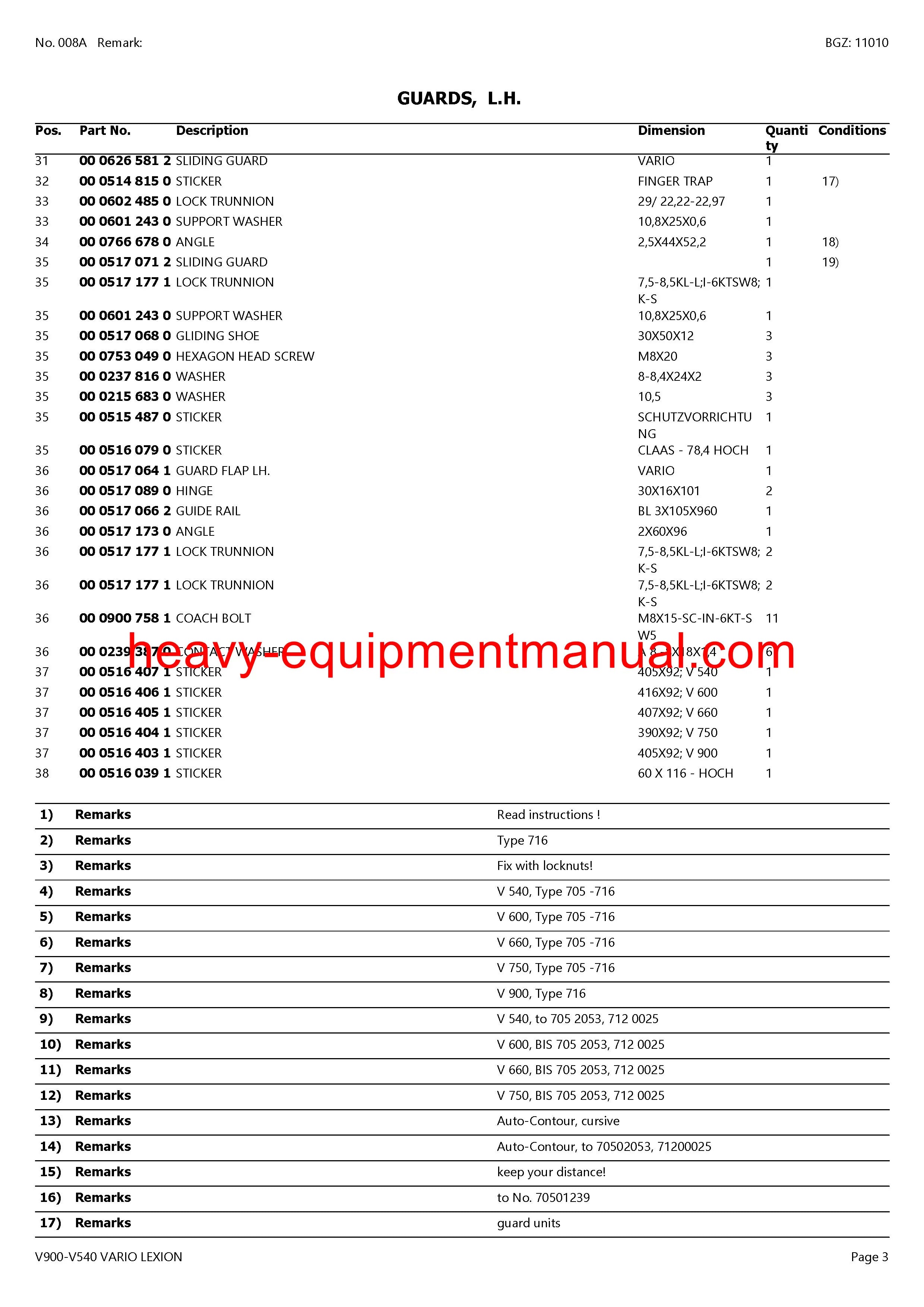 DOWNLOAD CLAAS V900-V540 VARIO LEXION CUTTERBAR PARTS CATALOG MANUAL (SN: 71200011-71299999)