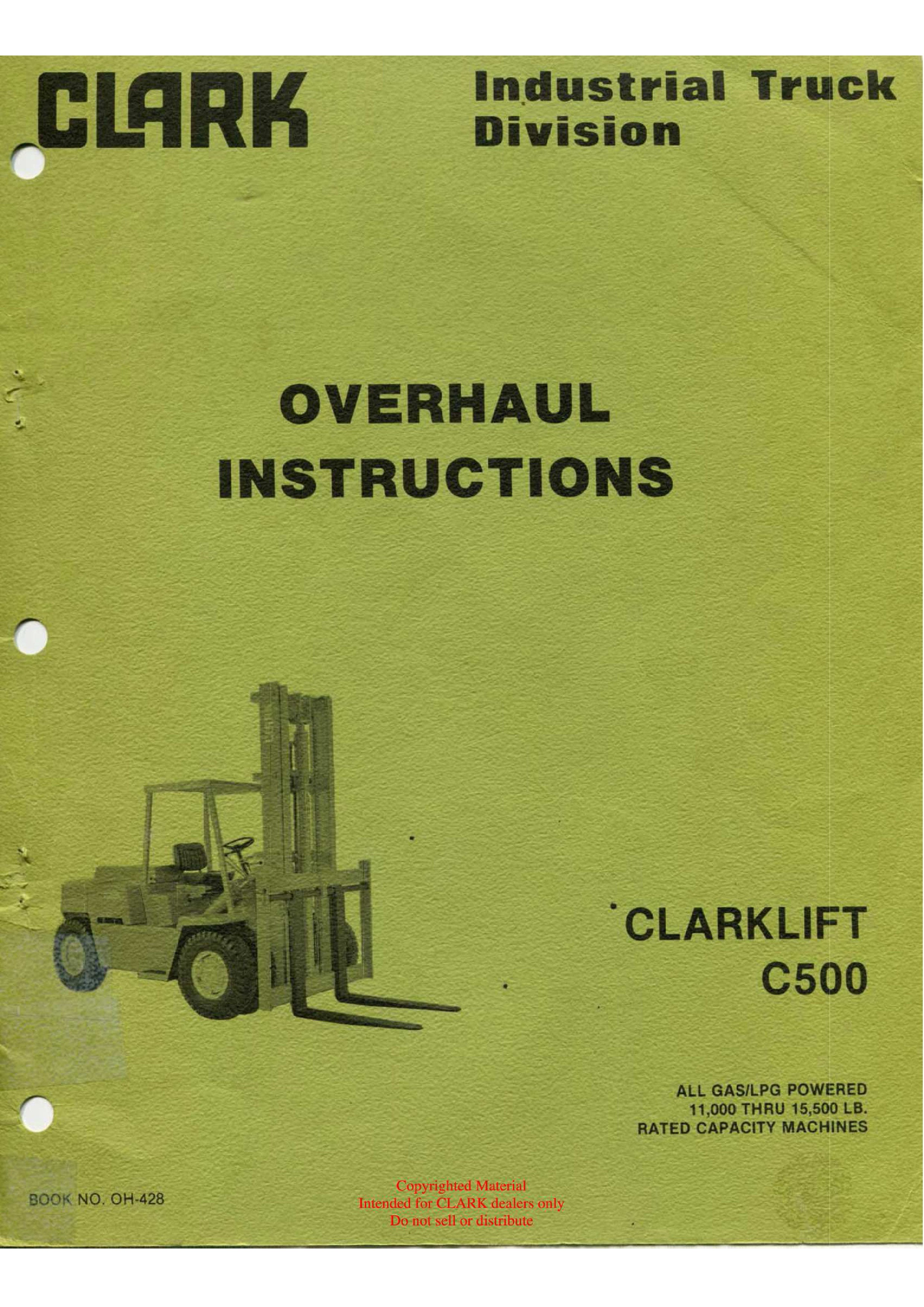 Get Instant Clark C500 (OH-428) Forklift Overhaul Manual - Download PDF