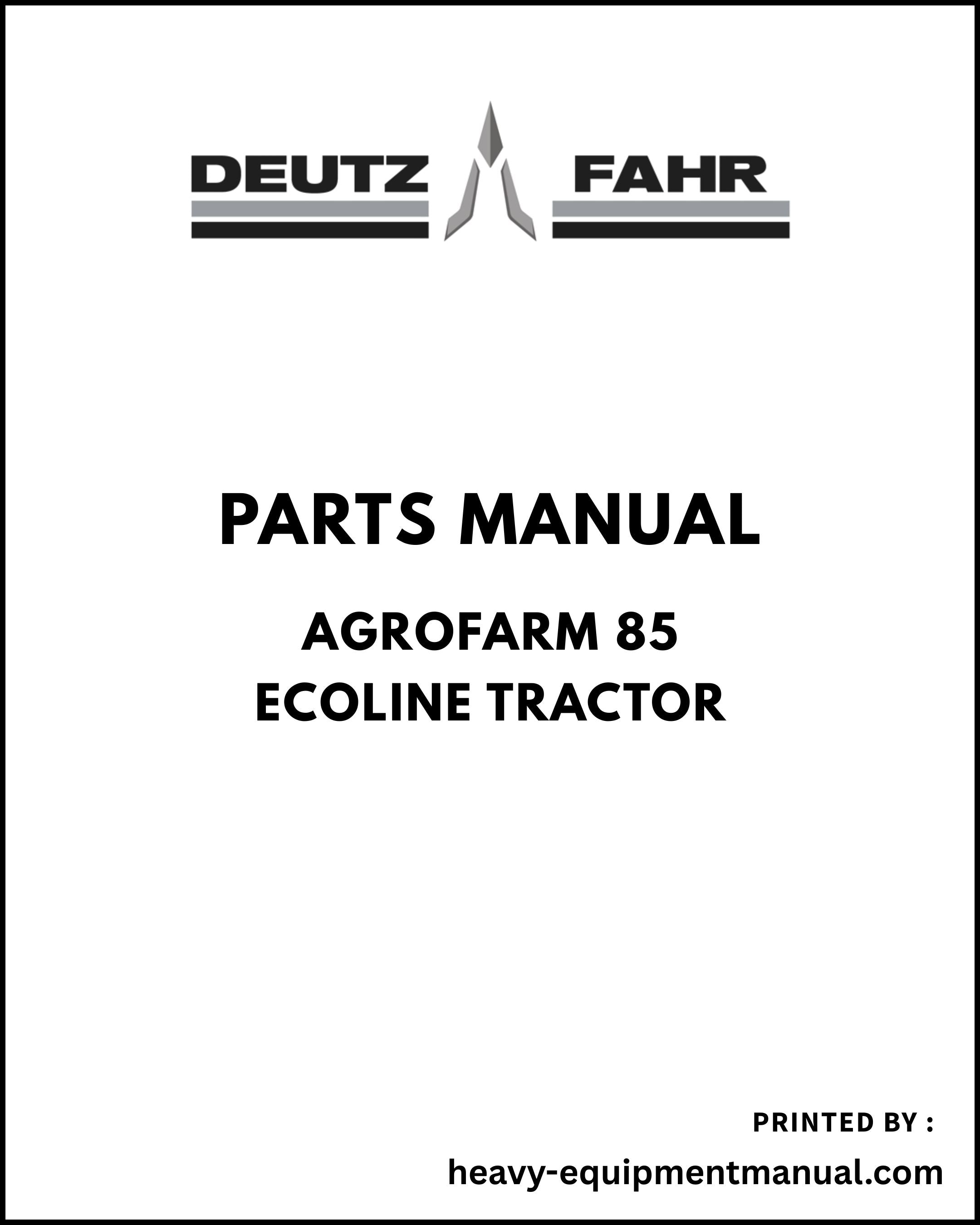 Deutz Fahr Agrofarm 85 ECOLINE Tractor Parts Manual - Pdf Download