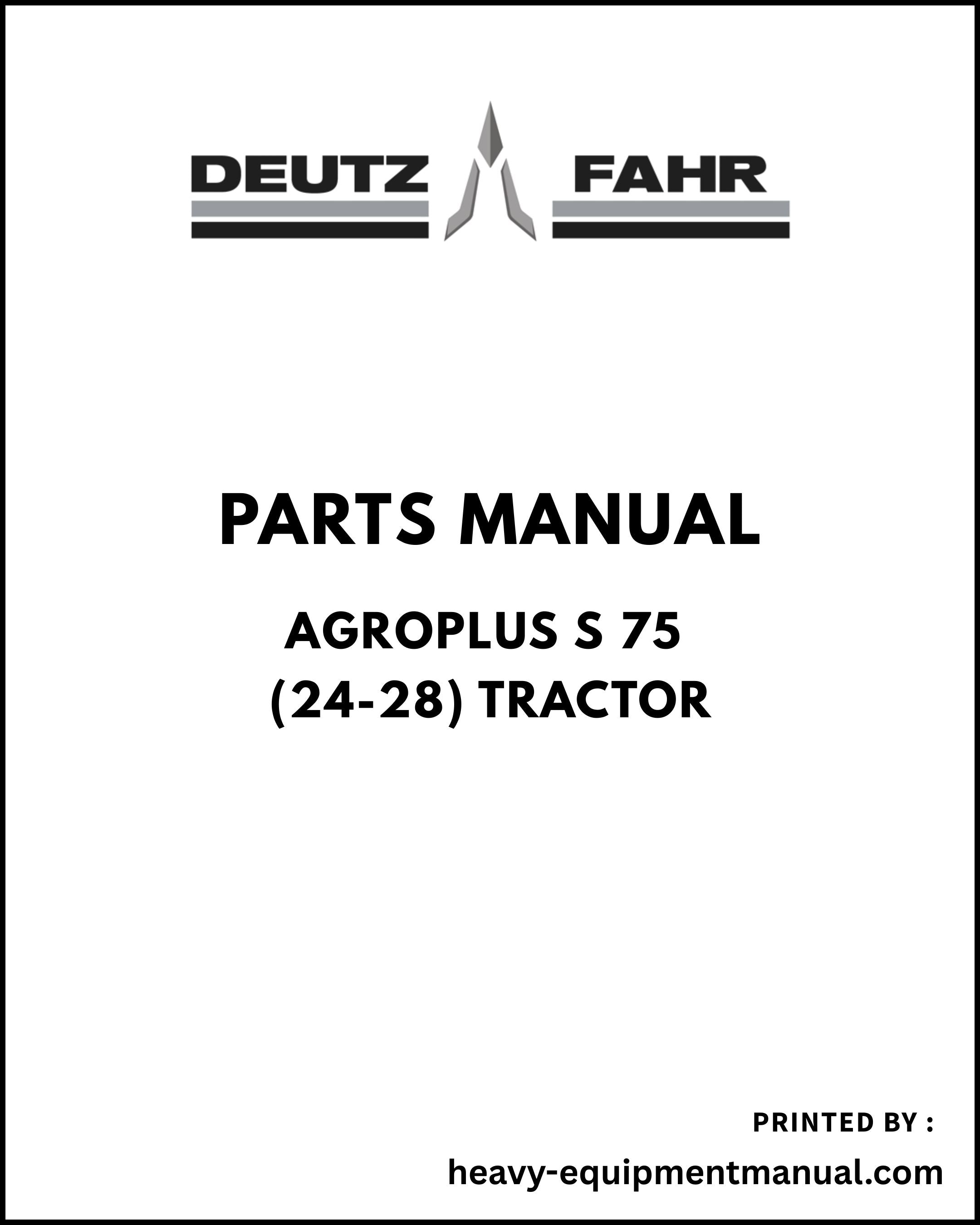 Deutz Fahr Agroplus S 75 (24-28) Tractor Parts Manual - Pdf Download (->7001)