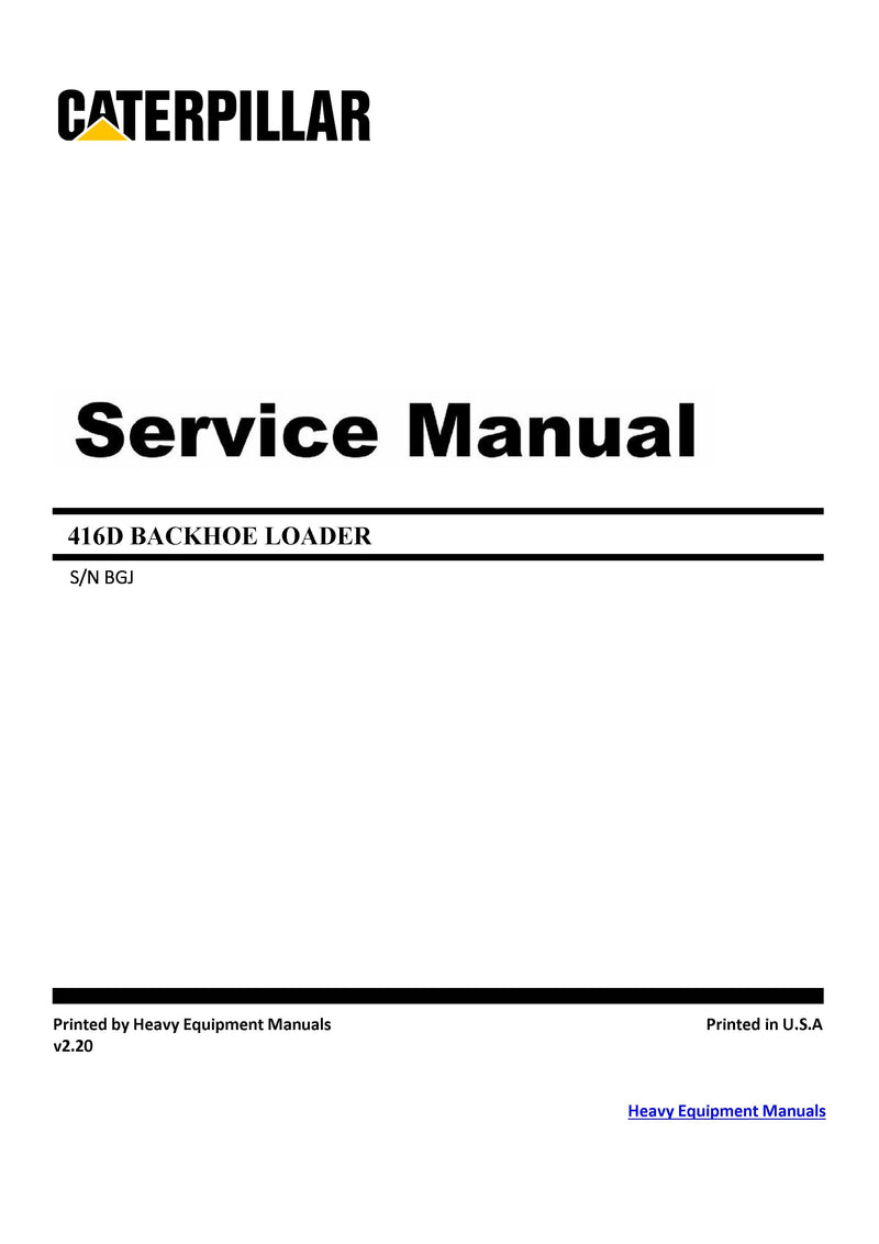 It is Complete Original Factory for Caterpillar 416D BACKHOE LOADER. Covers all the service and repair information about Caterpillar 416D BACKHOE LOADER. The information in this manual covers everything you need to know when you want to service and repair Caterpillar 416D BACKHOE LOADER.