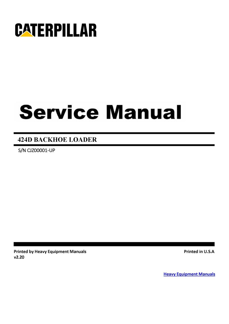 It is Complete Original Factory for Caterpillar 424D BACKHOE LOADER. Covers all the service and repair information about Caterpillar 424D BACKHOE LOADER. The information in this manual covers everything you need to know when you want to service and repair Caterpillar 424D BACKHOE LOADER.