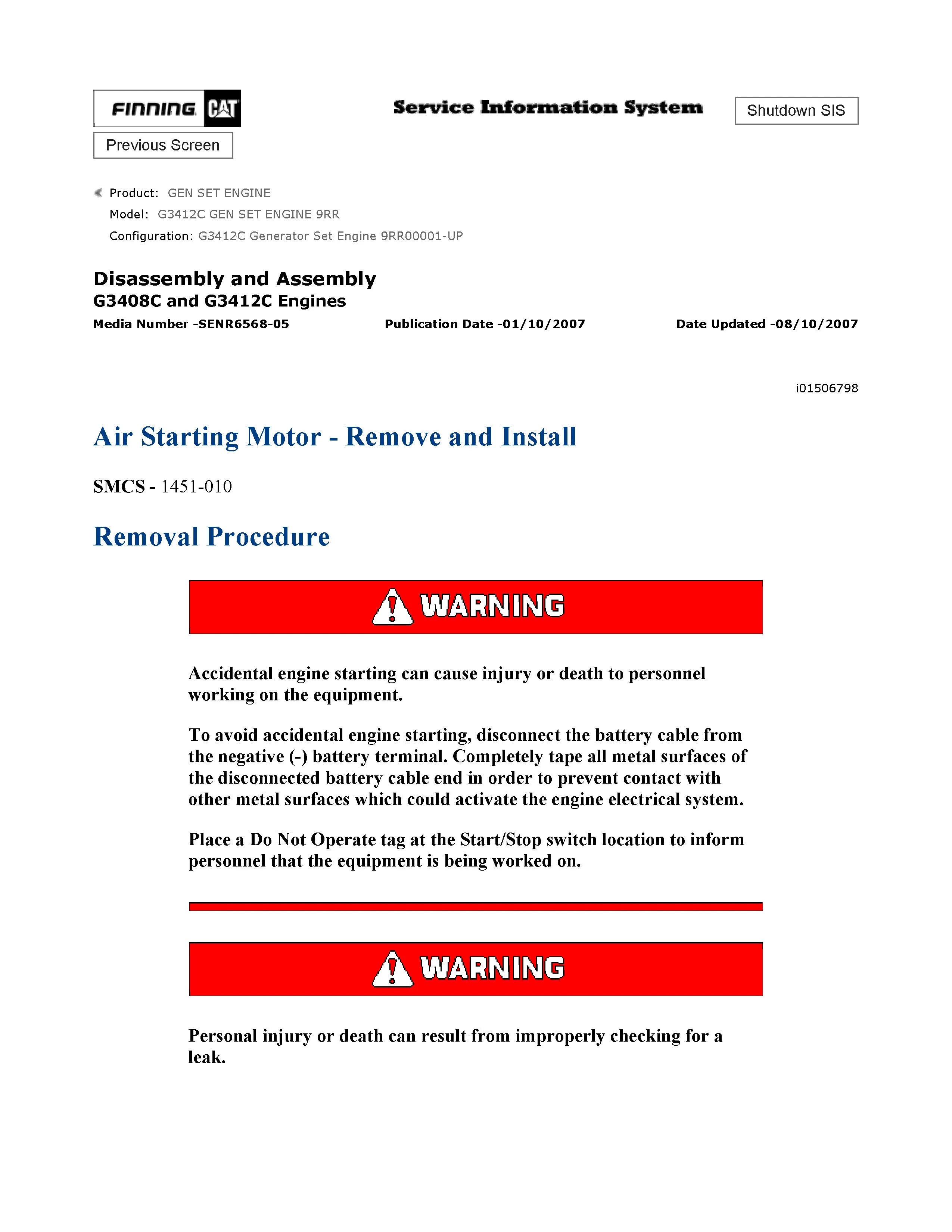 It is Complete Original Factory for Caterpillar G3412C GEN SET ENGINE covers all the service and repair information about Caterpillar G3412C GEN SET ENGINE. The information in this manual covers everything you need to know when you want to repair Caterpillar G3412C GEN SET ENGINE.