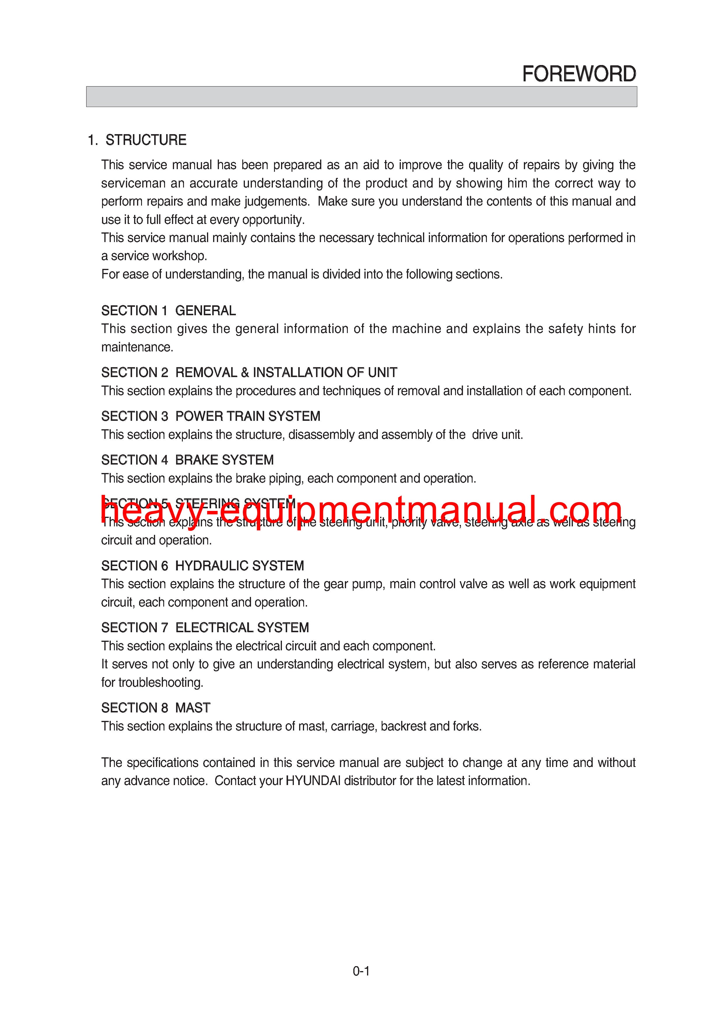 It is Complete Original Factory for Hyundai 16/18/20B-9F Forklift Service Manual covers all the service and repair information about Hyundai 16/18/20B-9F Forklift. The information in this manual covers everything you need to know when you want to repair Hyundai 16/18/20B-9F Forklift.