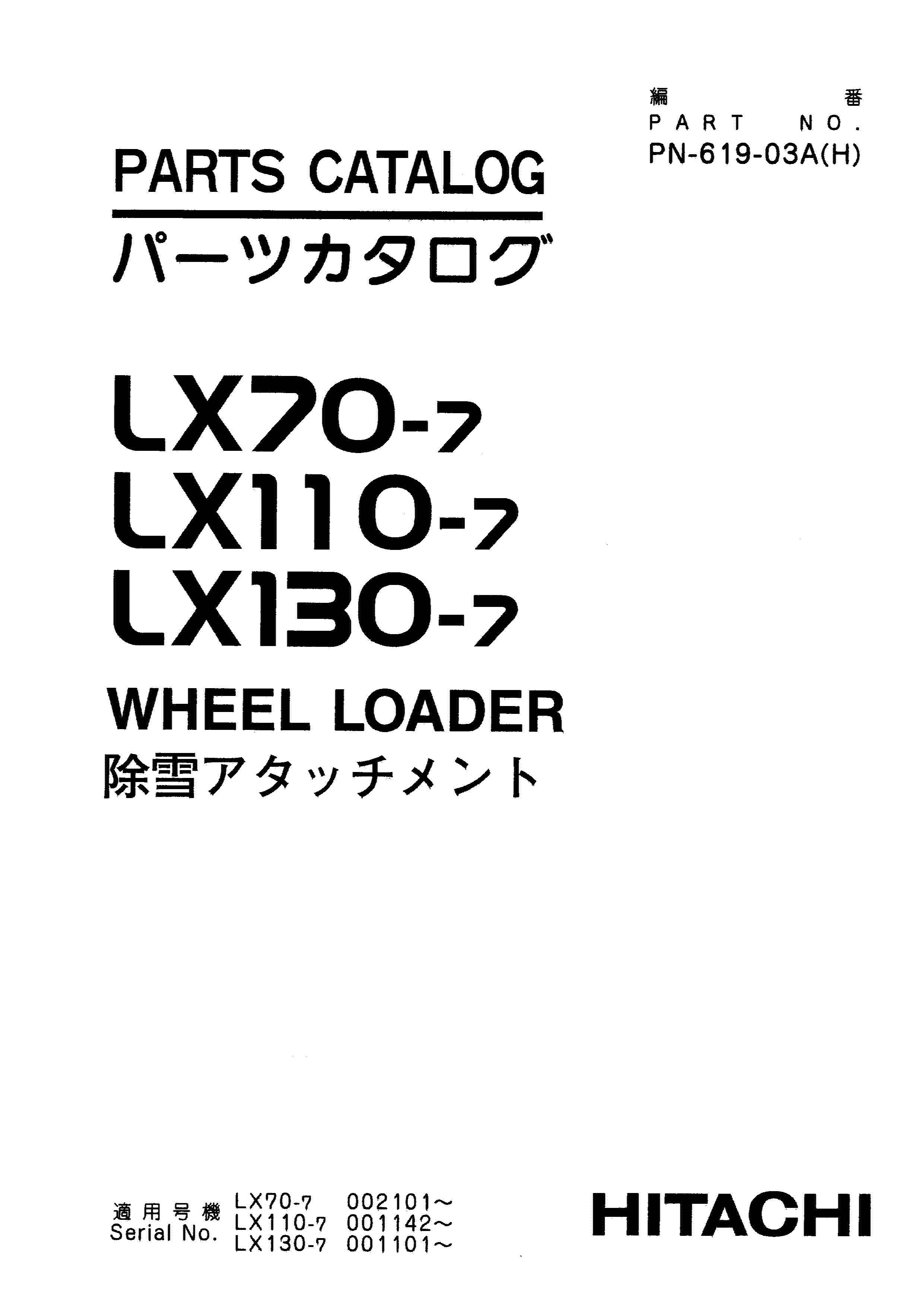 Hitachi LX70-7, LX110-7, LX130-7 Wheel Loader Parts Manual Download