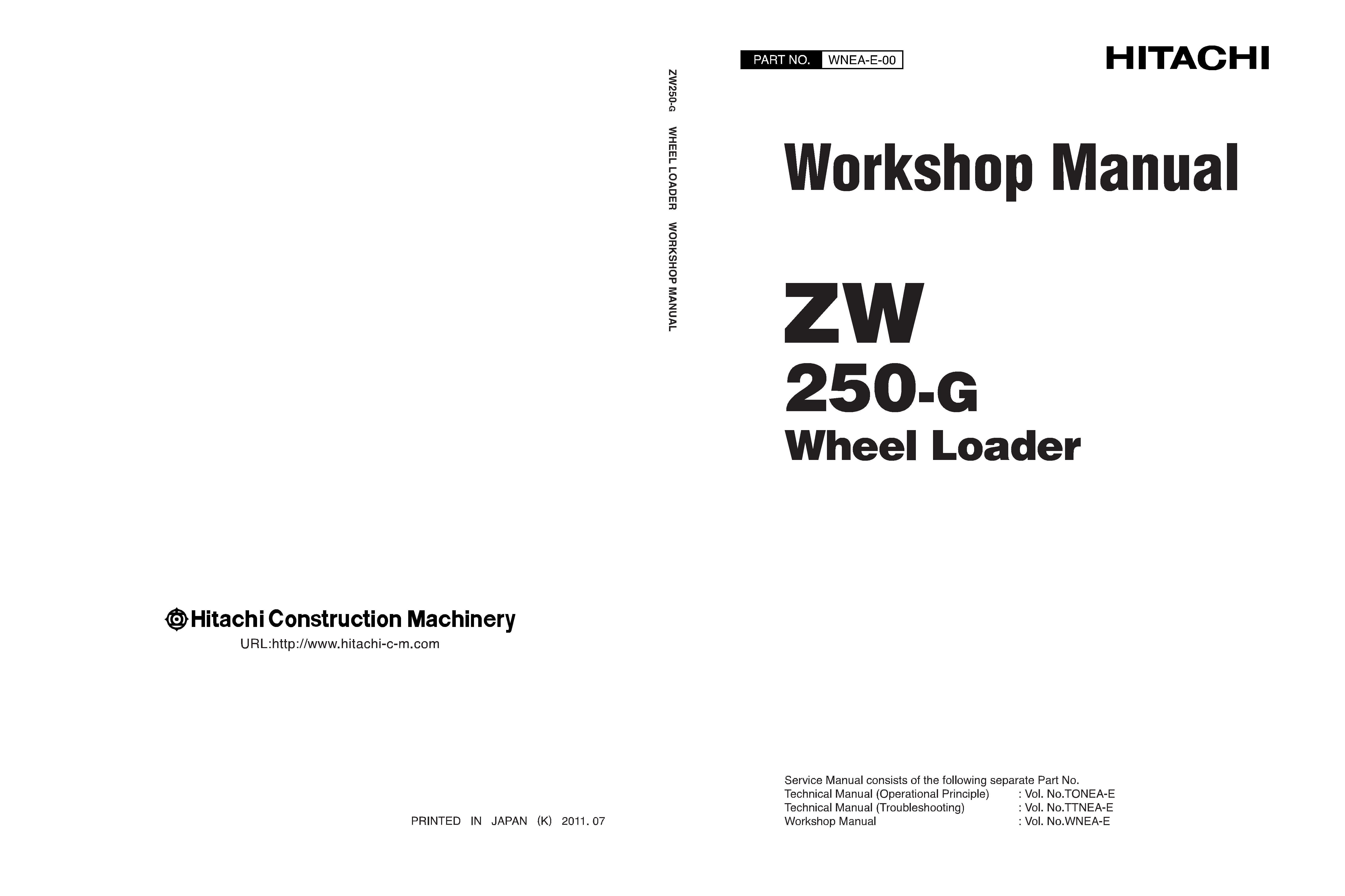It is Complete Original Factory covers all the service and repair information for Hitachi ZW250-G Wheel Loader.