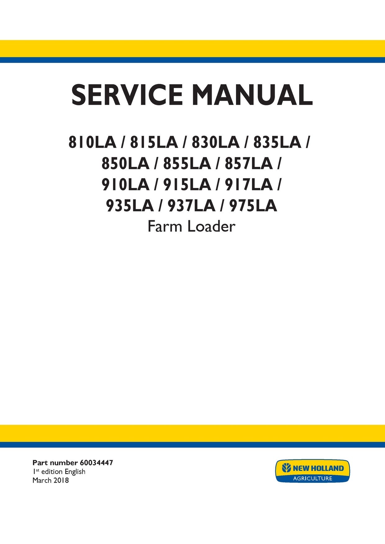 New Holland 810LA 815LA 830LA 835LA 850LA 855LA 857LA 910LA 915LA 917LA 935LA 937LA 975LA Farm Loader Service Repair Manual 60034447