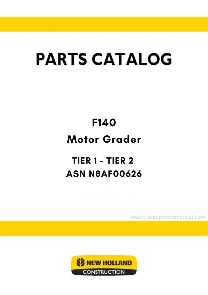 New Holland F140 Motor Grader Parts Manual ASN N8AF00626 (TIER 1 - TIER 2)