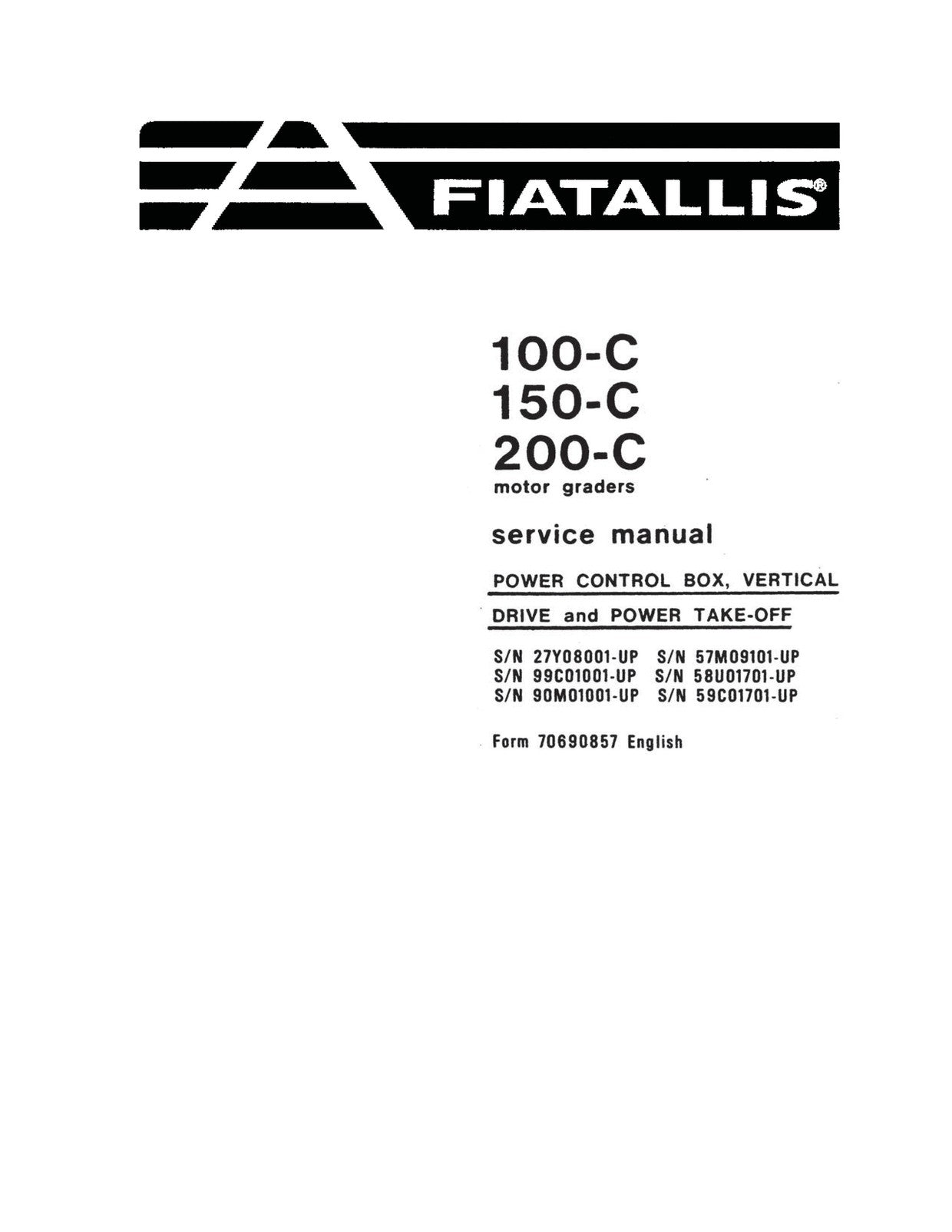 Download New Holland Fiat-Allis 100-C 150-C 200-C Motor graders Power Control Box Vertical Drive and Power Take-off Service Repair Manual 70690857