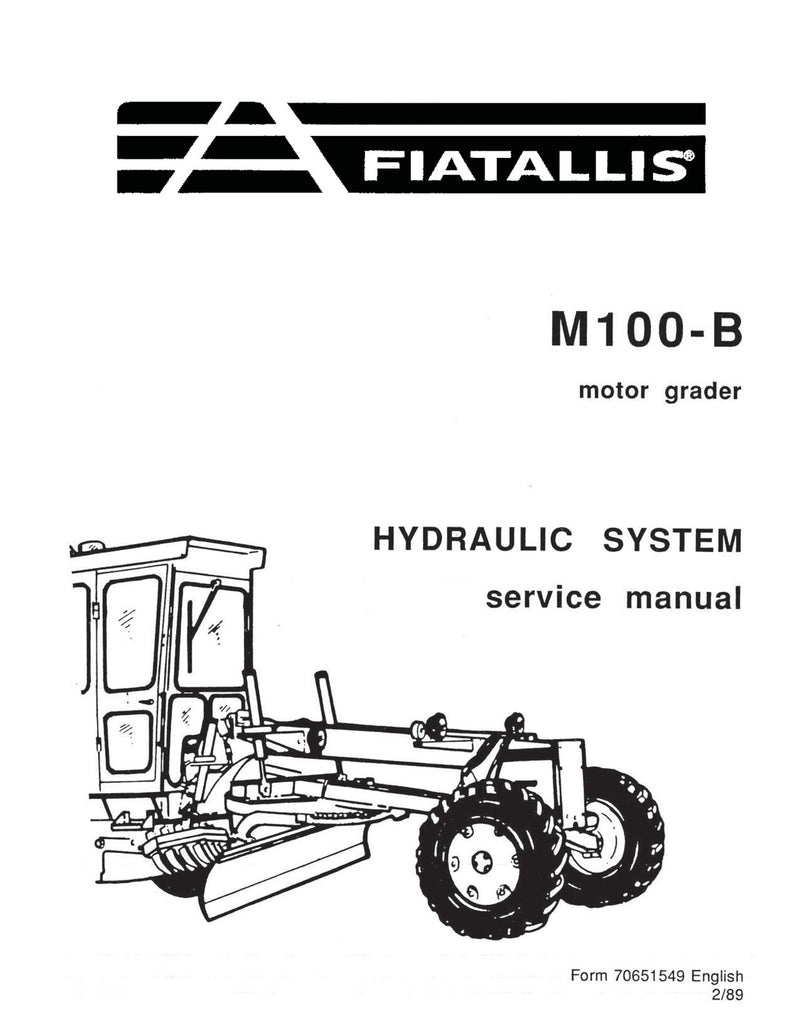 It is Complete Original Factory for New Holland FIAT ALLIS M100B Motor Grader Hydraulic System. Covers all the service and repair information about New Holland FIAT ALLIS M100B Motor Grader Hydraulic System. The information in this manual covers everything you need to know when you want to service and repair New Holland FIAT ALLIS M100B Motor Grader Hydraulic System.