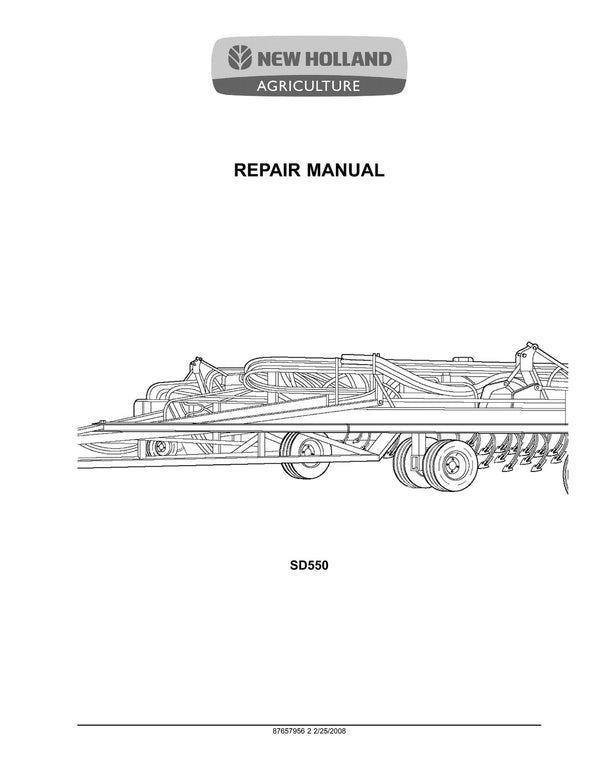 It is Complete Original Factory for New Holland SD550 Air Drill (Air Seeder). Covers all the service and repair information about New Holland SD550 Air Drill (Air Seeder). The information in this manual covers everything you need to know when you want to service and repair New Holland SD550 Air Drill (Air Seeder).