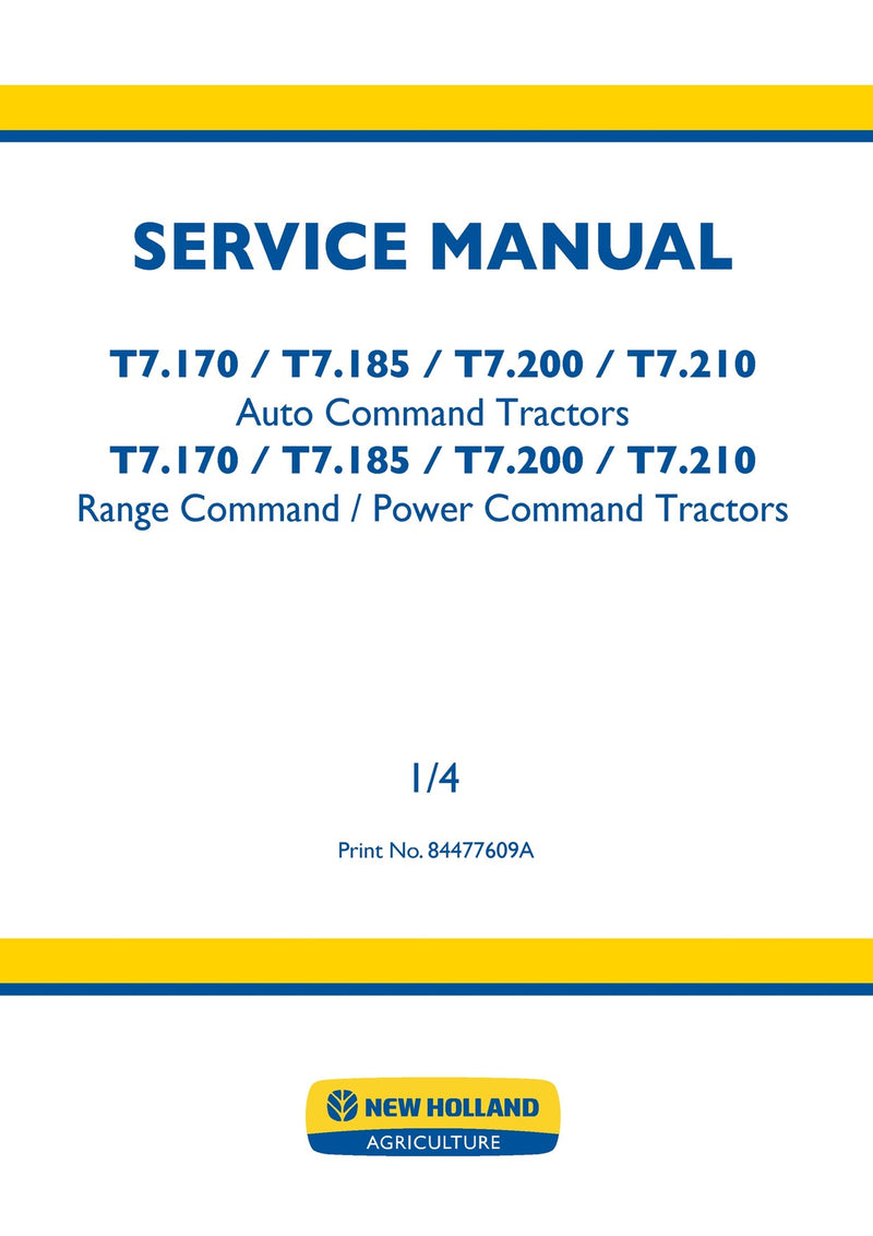 It is Complete Original Factory for New Holland T7.170, T7.185, T7.200, T7.210 Tractor. Covers all the service and repair information about New Holland T7.170, T7.185, T7.200, T7.210 Tractor. The information in this manual covers everything you need to know when you want to service and repair New Holland T7.170, T7.185, T7.200, T7.210 Tractor.