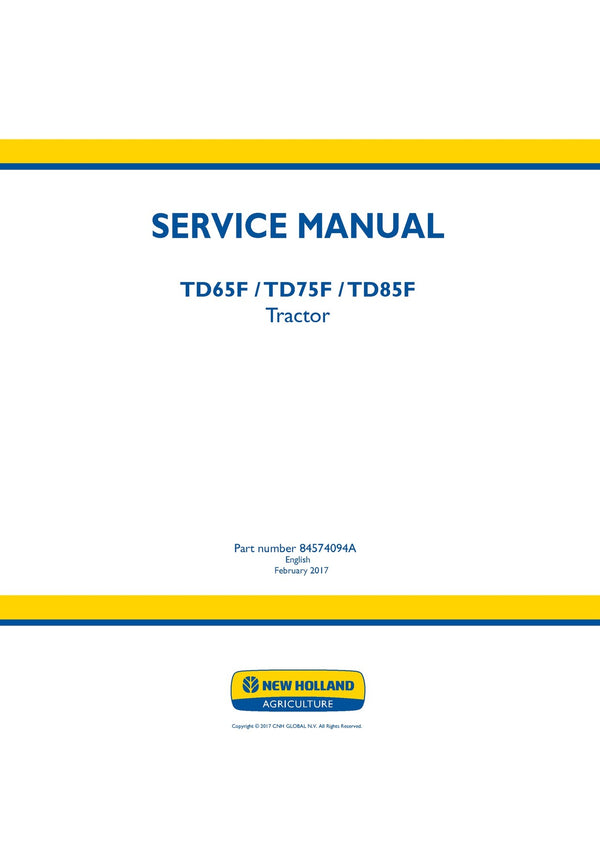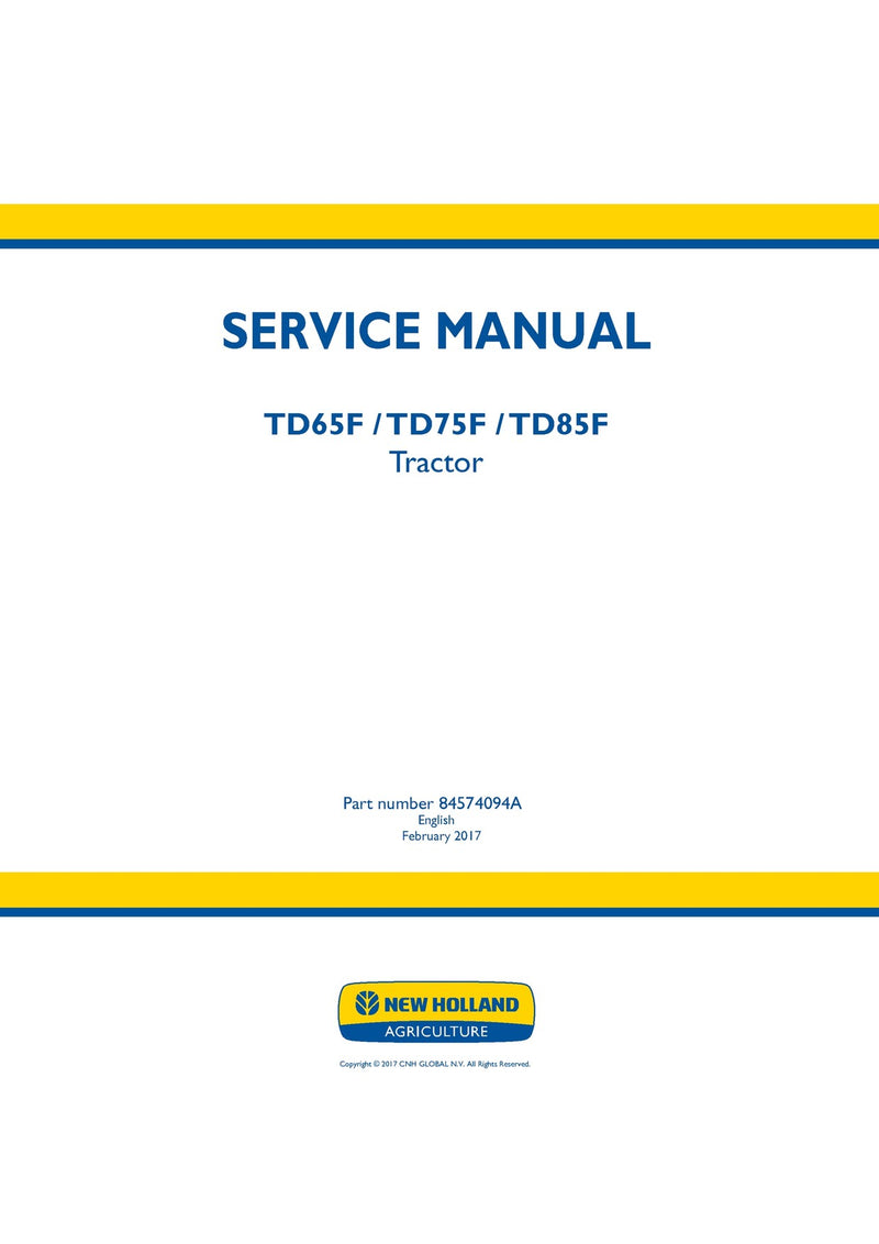 New Holland TD65F TD75F TD85F Tractor Service Repair Manual 84574094A