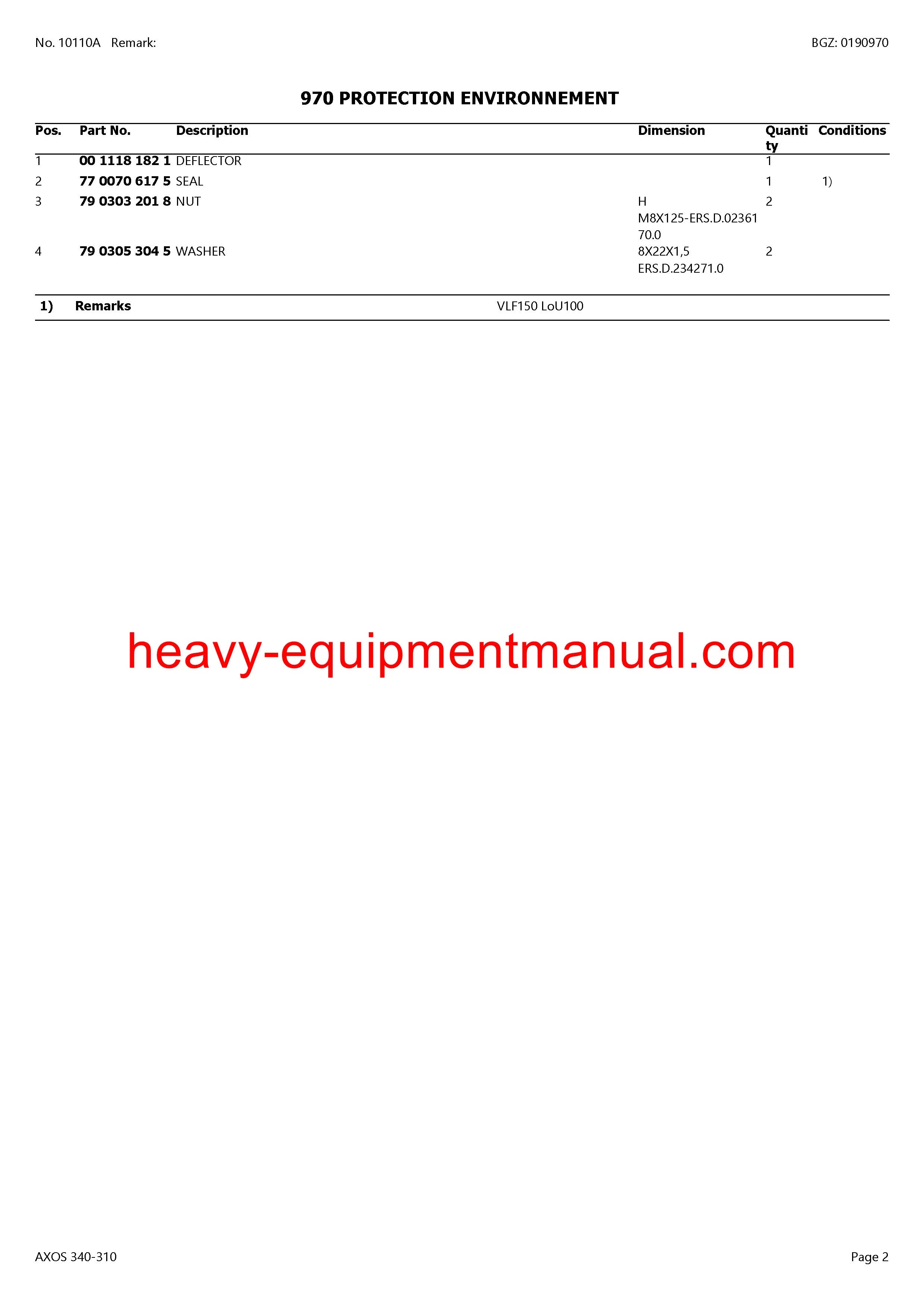 PDF Claas 340 - 310 T2 Axos Tractor Parts Manual
