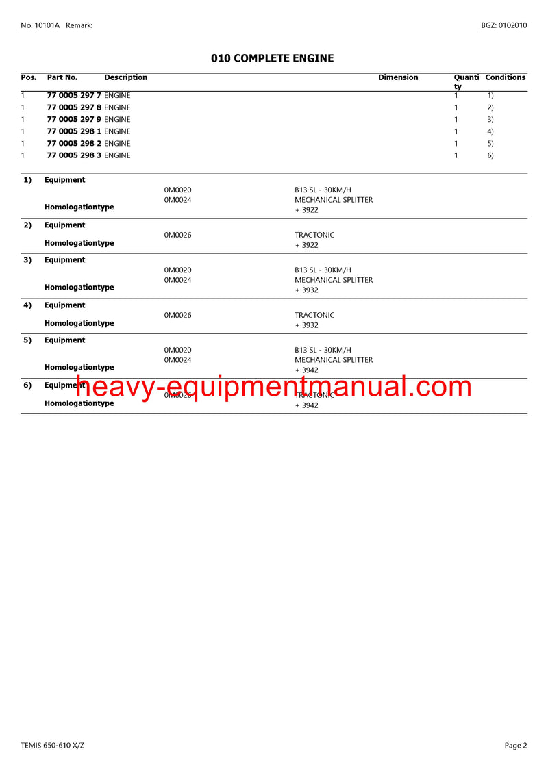 PDF Claas 650 - 610 X/Z Temis Tractor Parts Manual