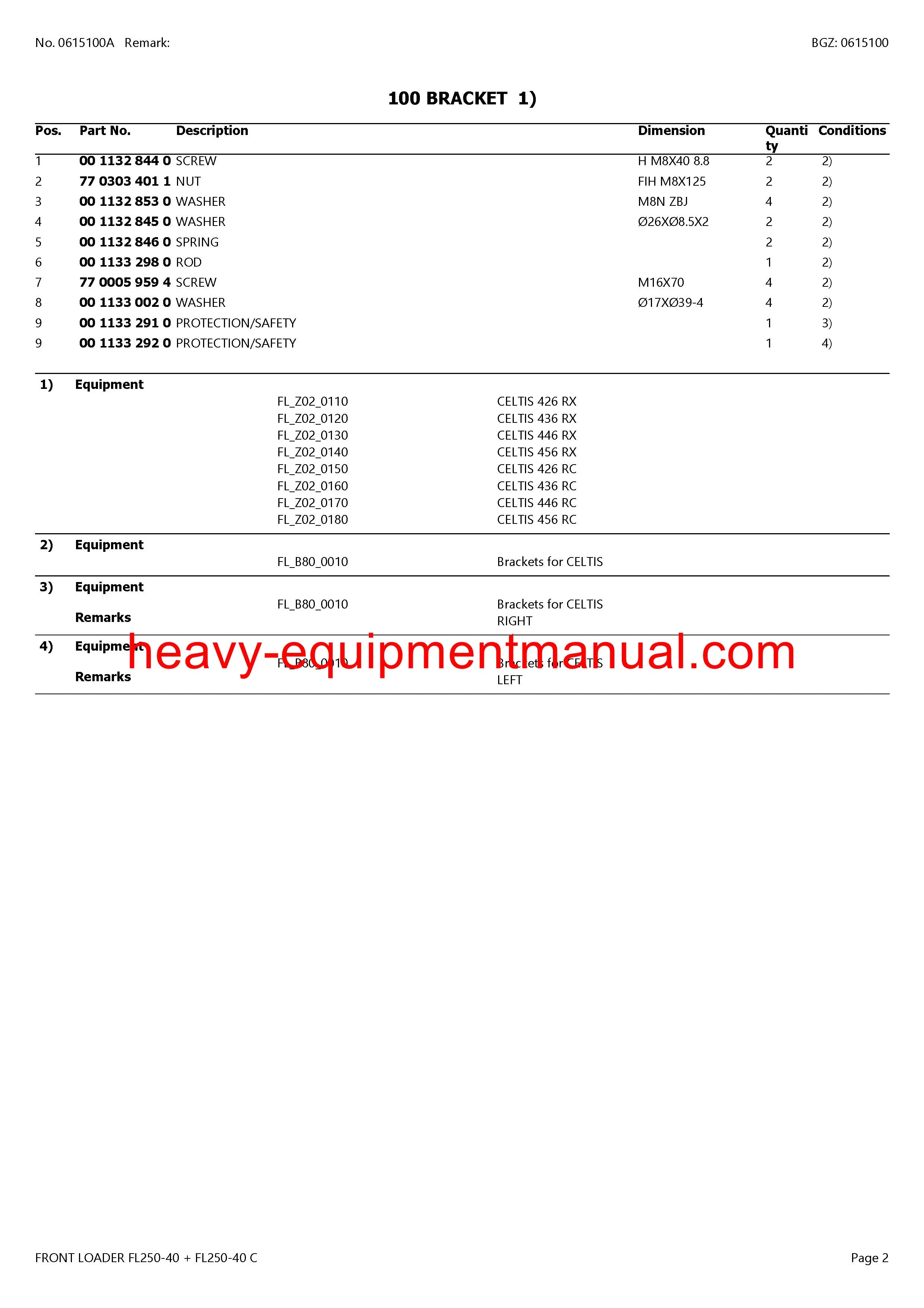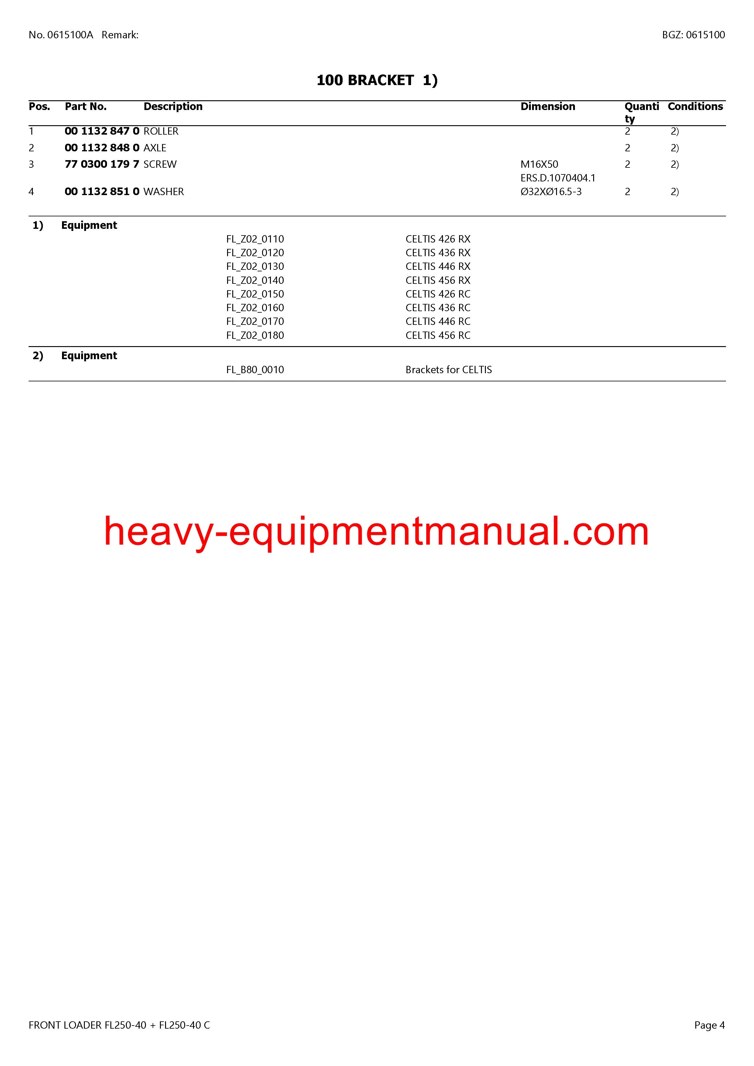 PDF Claas FL250-40 FL250-40C Frontloader Tractor Parts Manual