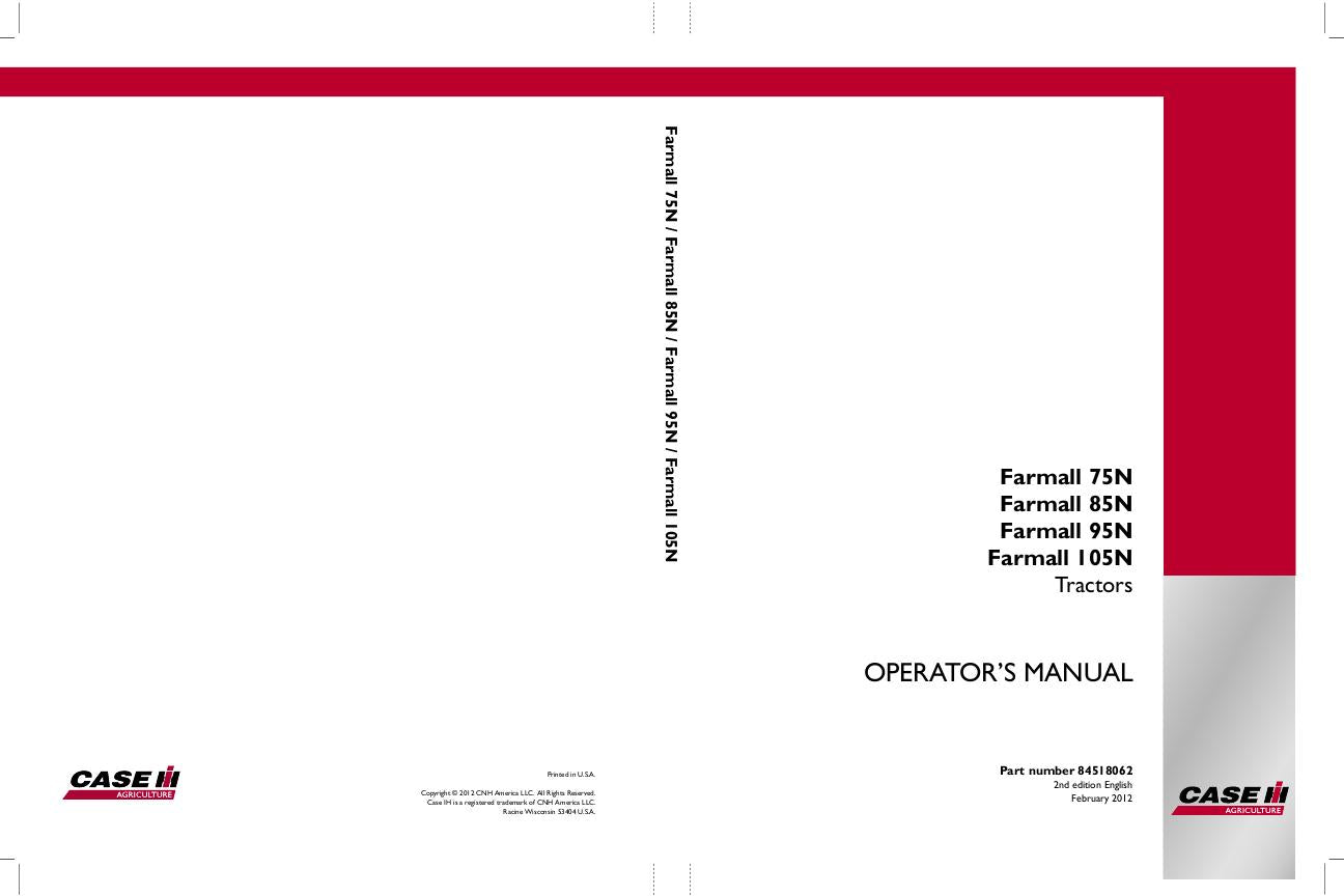 Case IH Tractor FARMALL75N FARMALL85N FARMALL95N FARMALL Operator’s