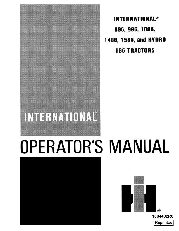 It is an Complete Factory original factory Operator's Manual For Case IH Tractor International 886 986 1086 1486 1586 and Hydro 186 Operator’s. We Offers Manual HIGH quality images, diagrams, instructions to help you to operate. This document is printable, without restrictions, contains searchable text, bookmarks, crosslinks for easy navigation.