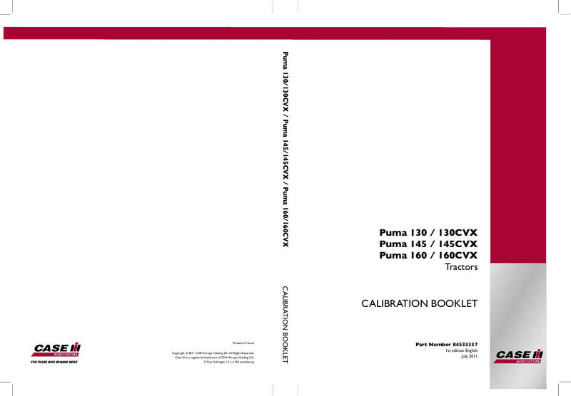 It is an Complete Factory original factory Operator's Manual For Case IH Tractor Puma 130 130CVX 145 145CVX 160 160CVX. We Offers Manual HIGH quality images, diagrams, instructions to help you to operate. This document is printable, without restrictions, contains searchable text, bookmarks, crosslinks for easy navigation.