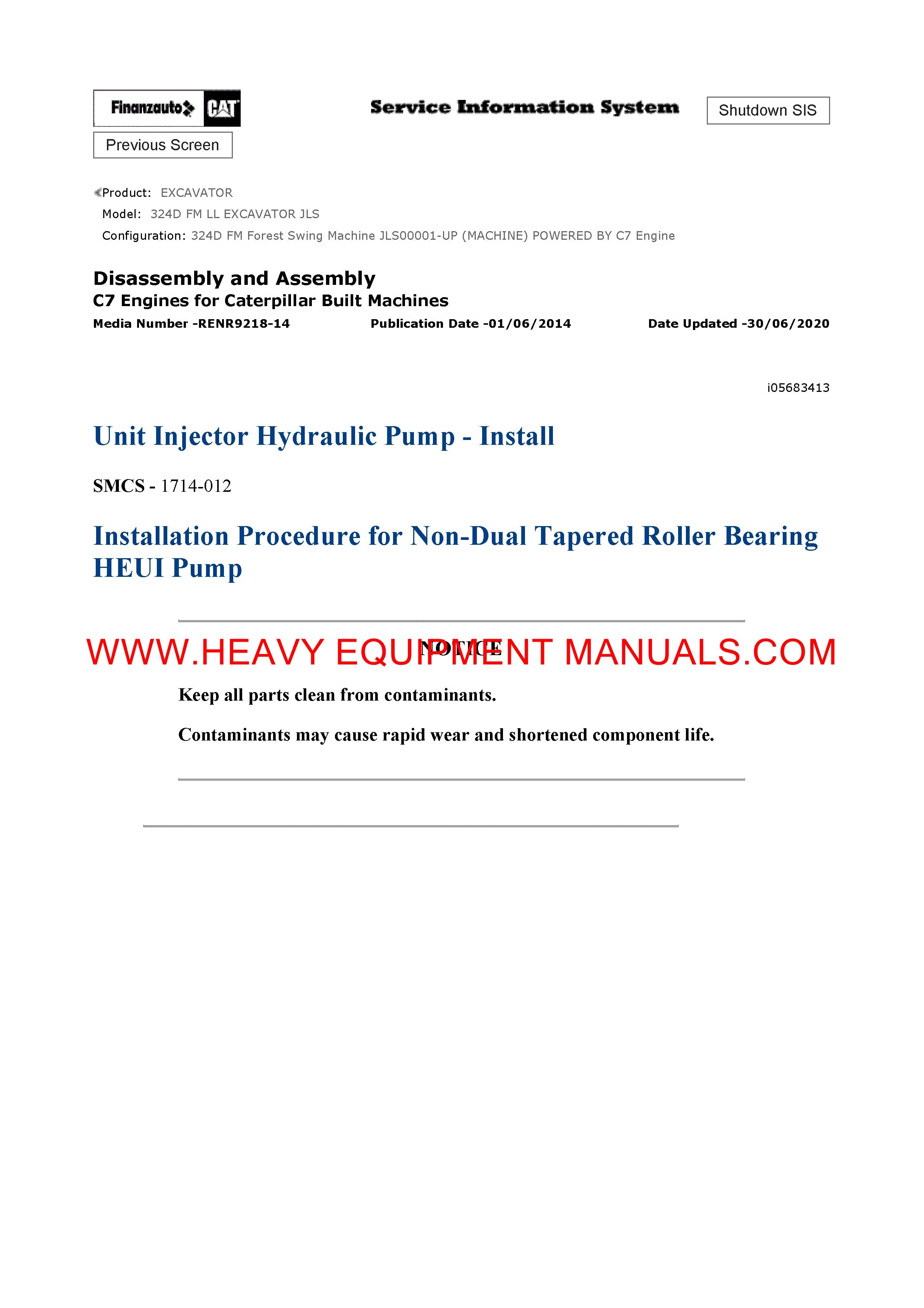 Caterpillar 324D FM LL EXCAVATOR General Service Information