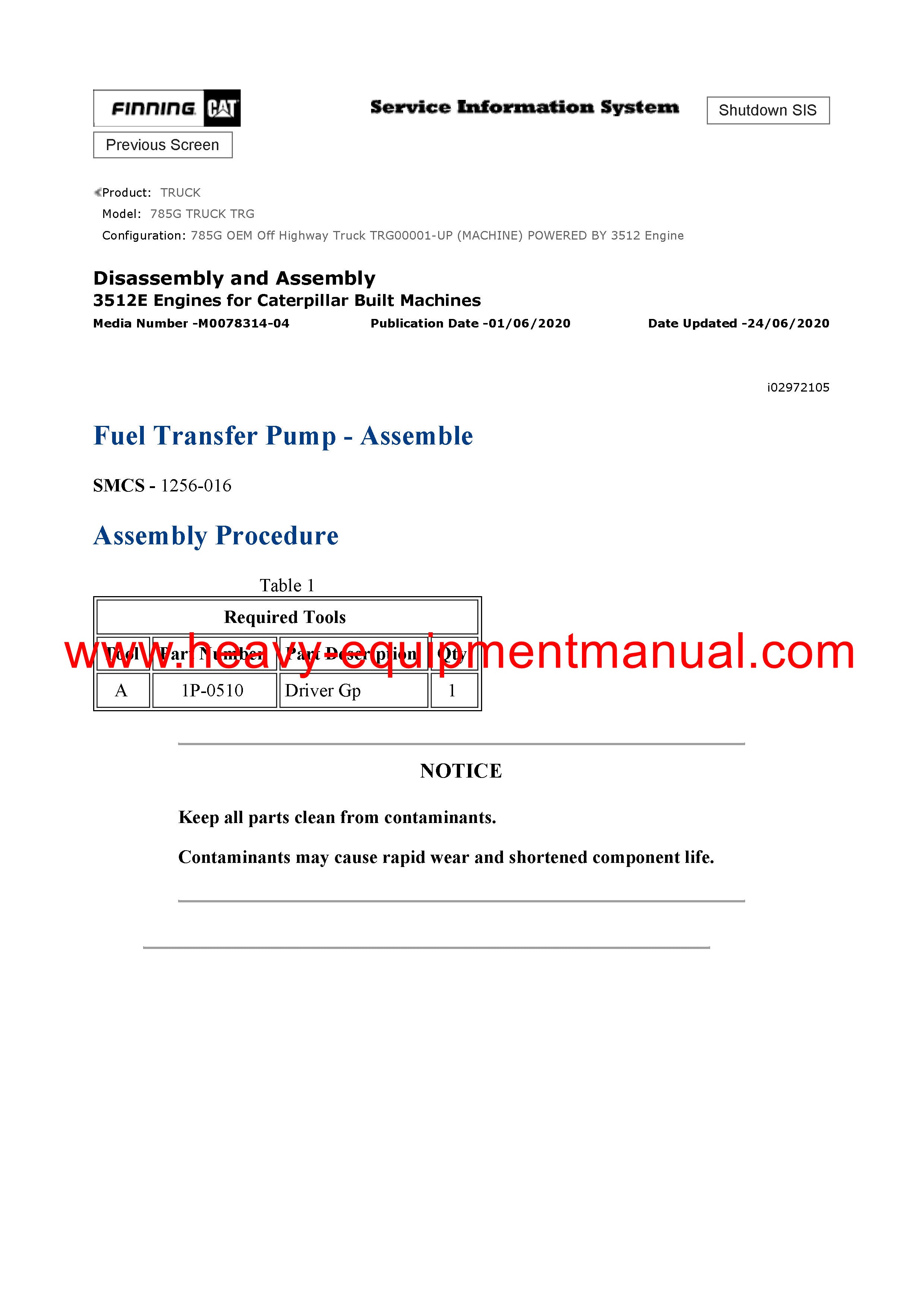 It is Complete Original Factory for Caterpillar 785G Truck covers all the service and repair information about Caterpillar 785G Truck. The information in this manual covers everything you need to know when you want to repair Caterpillar 785G Truck.