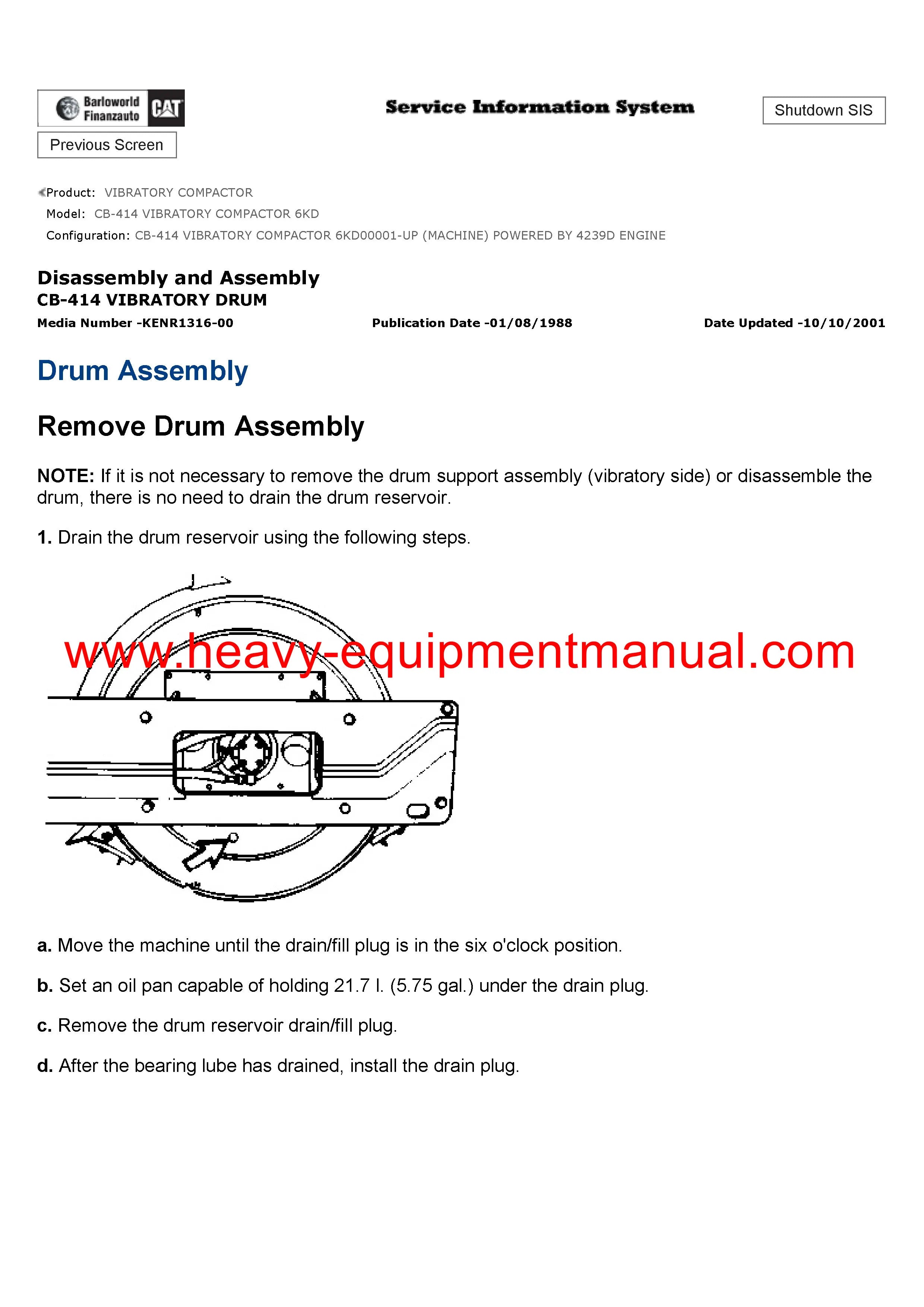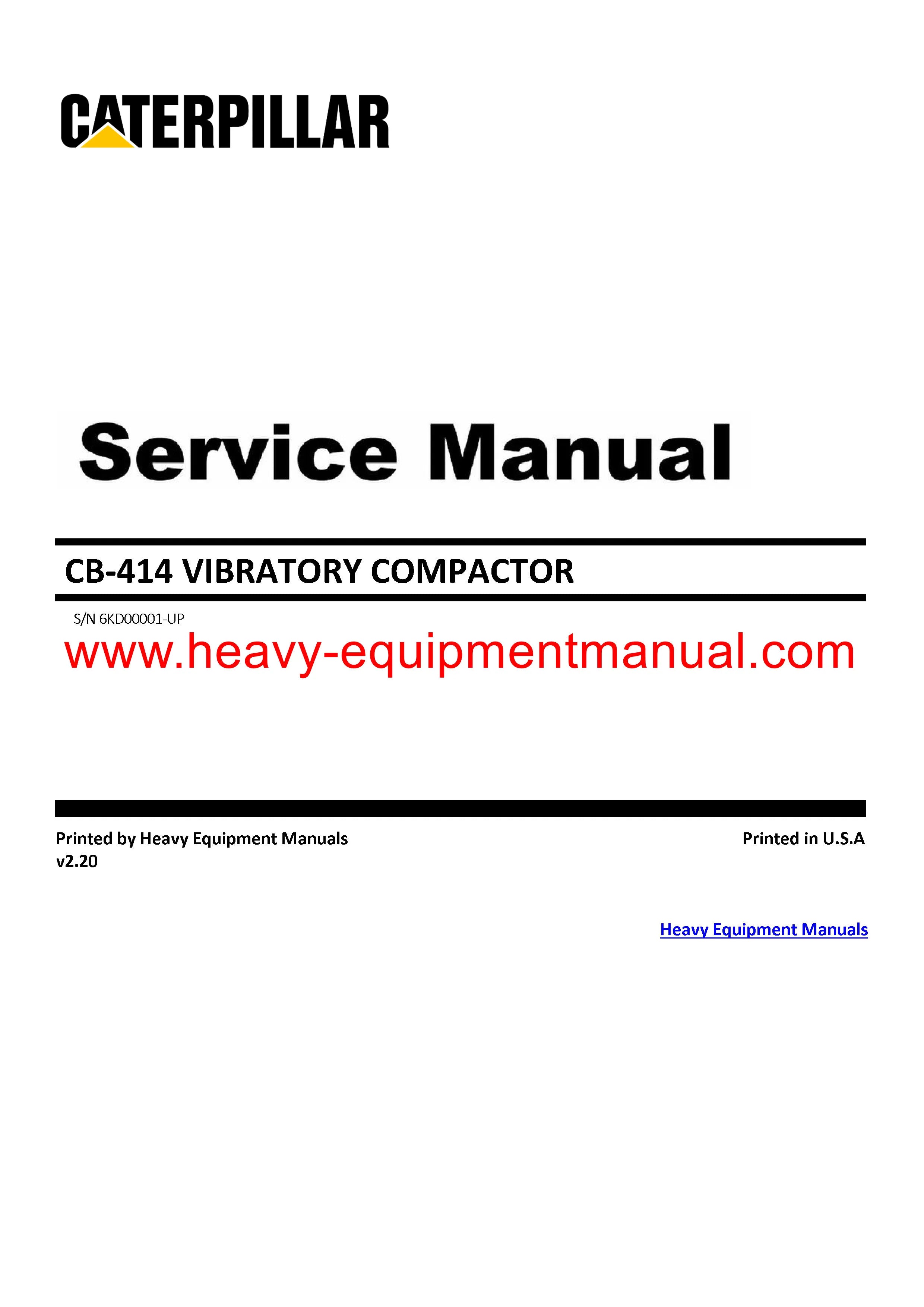 It is Complete Original Factory for Caterpillar CB-414 VIBRATORY COMPACTOR covers all the service and repair information about Caterpillar CB-414 VIBRATORY COMPACTOR. The information in this manual covers everything you need to know when you want to repair Caterpillar CB-414 VIBRATORY COMPACTOR.