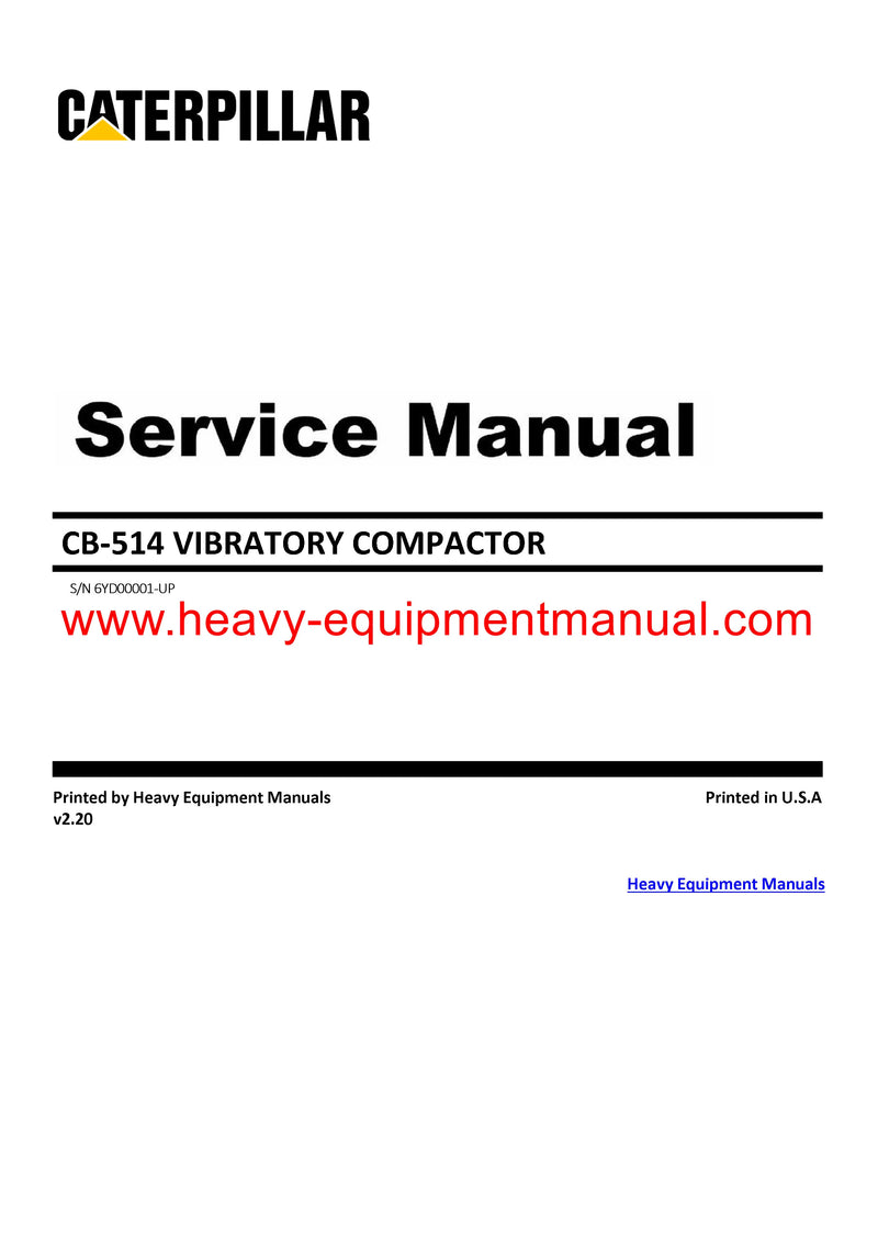 It is Complete Original Factory for Caterpillar CB-514 VIBRATORY COMPACTOR covers all the service and repair information about Caterpillar CB-514 VIBRATORY COMPACTOR. The information in this manual covers everything you need to know when you want to repair Caterpillar CB-514 VIBRATORY COMPACTOR.
