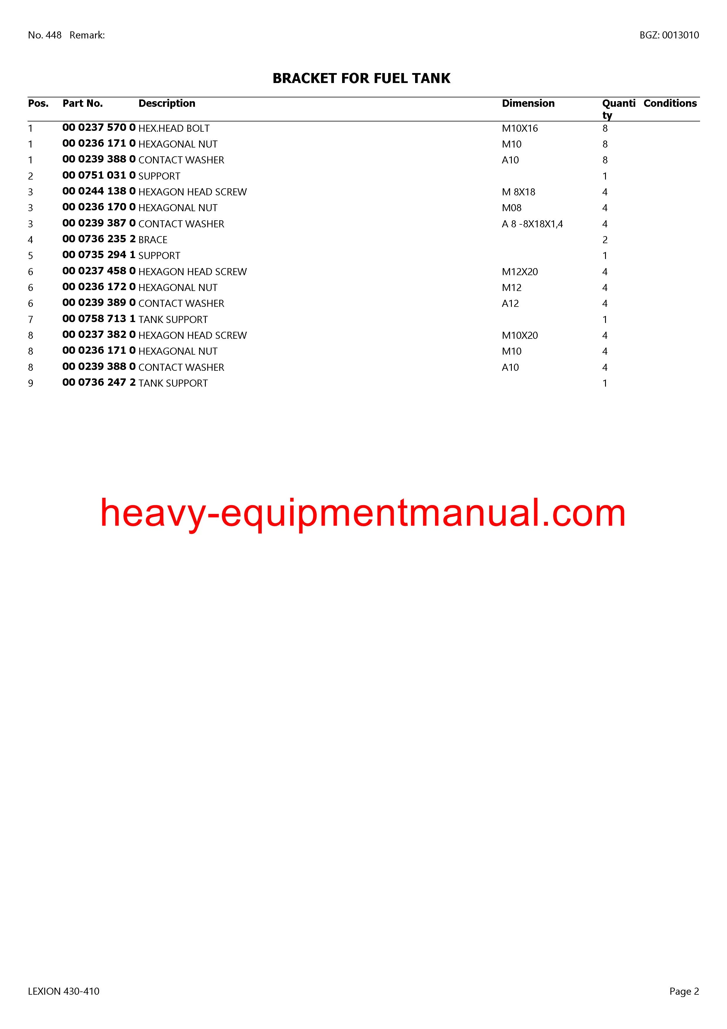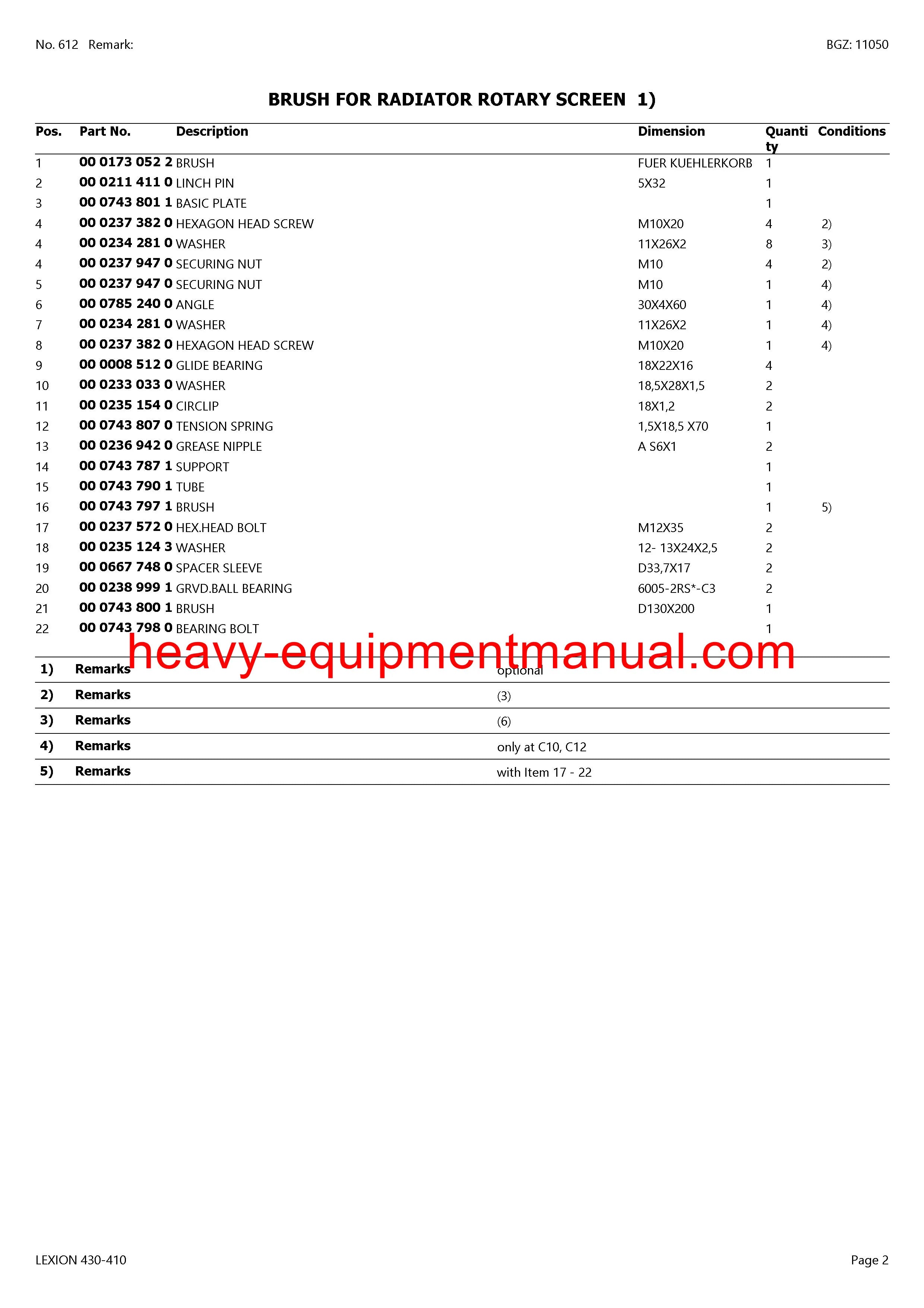 PDF Claas 430 - 410 Lexion Combine Parts Manual