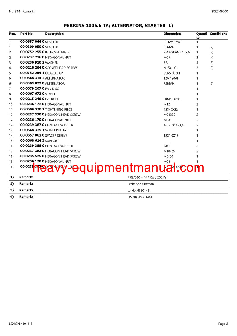 PDF Claas 430 - 415 Lexion Combine Parts Manual