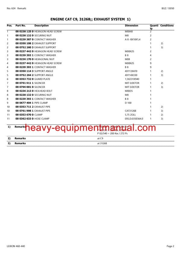PDF Claas 460 - 440 Lexion Combine Parts Manual
