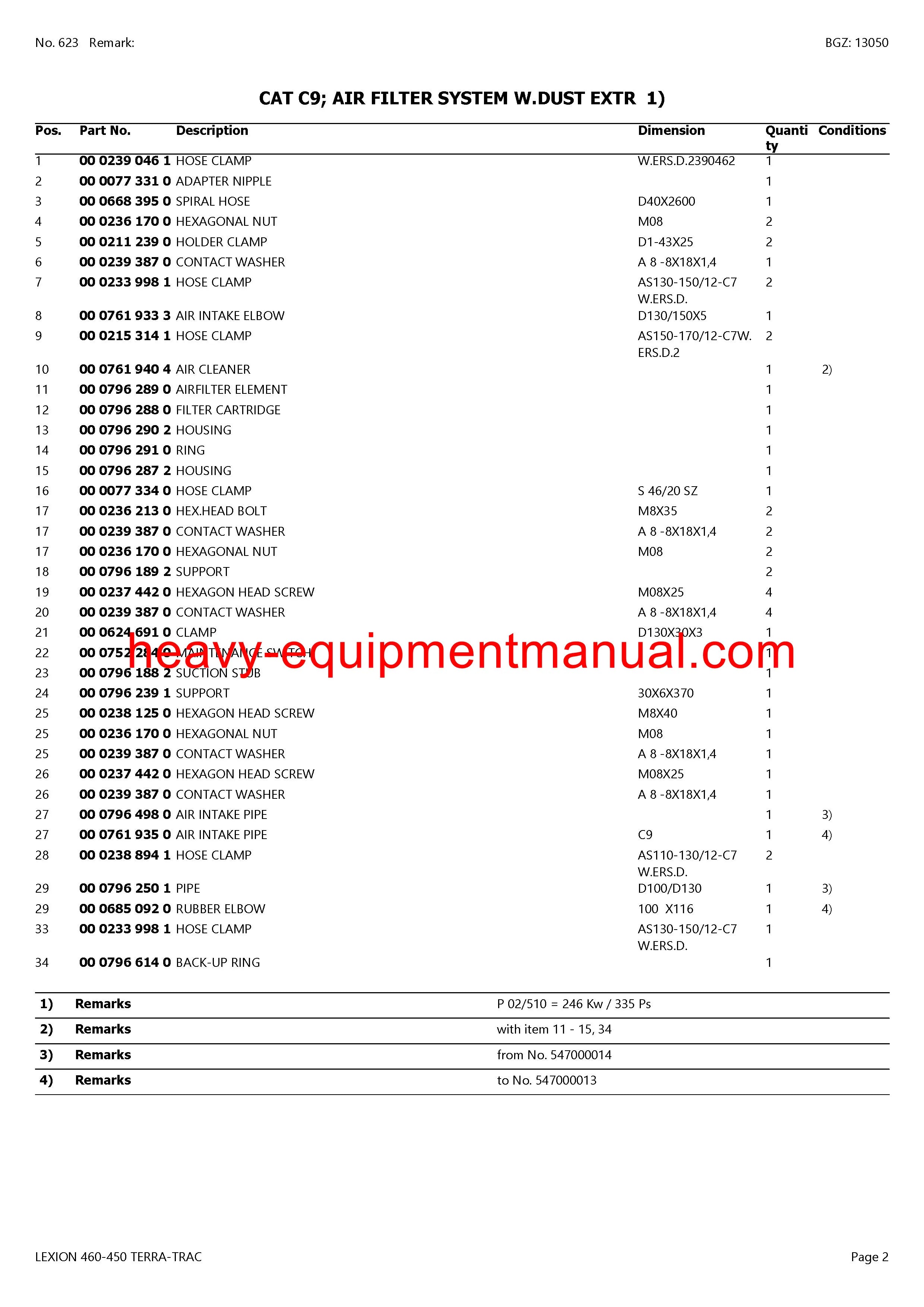 PDF Claas 460 - 450 Lexion Terra-trac Combine Parts Manual