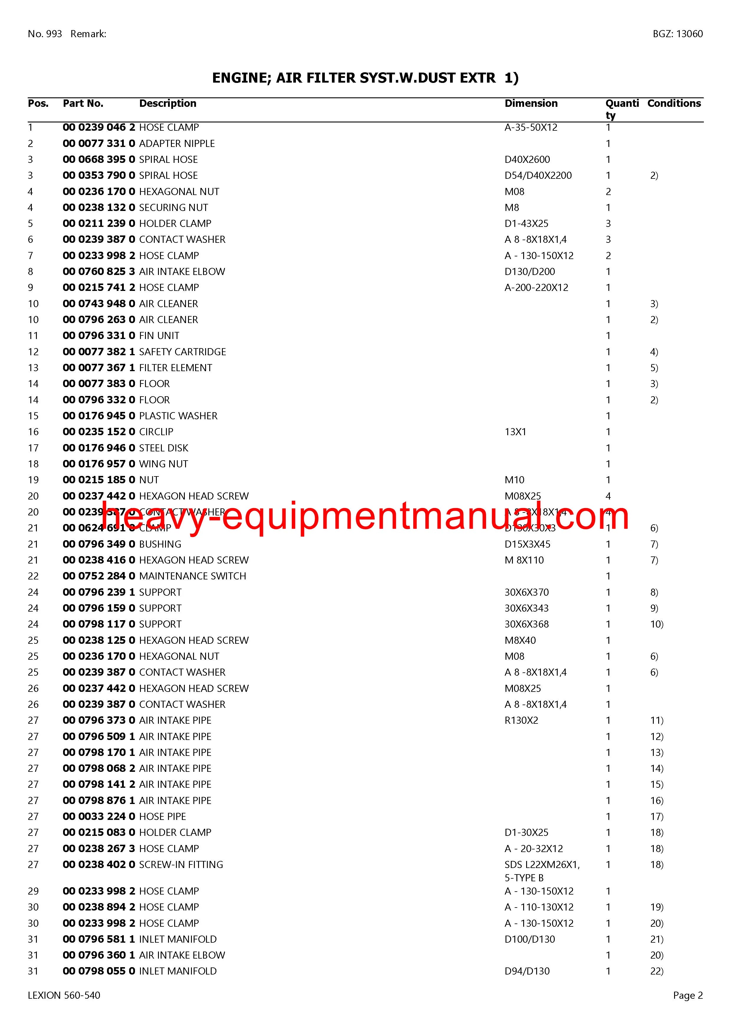 PDF Claas 560 - 540 Lexion Combine Parts Manual